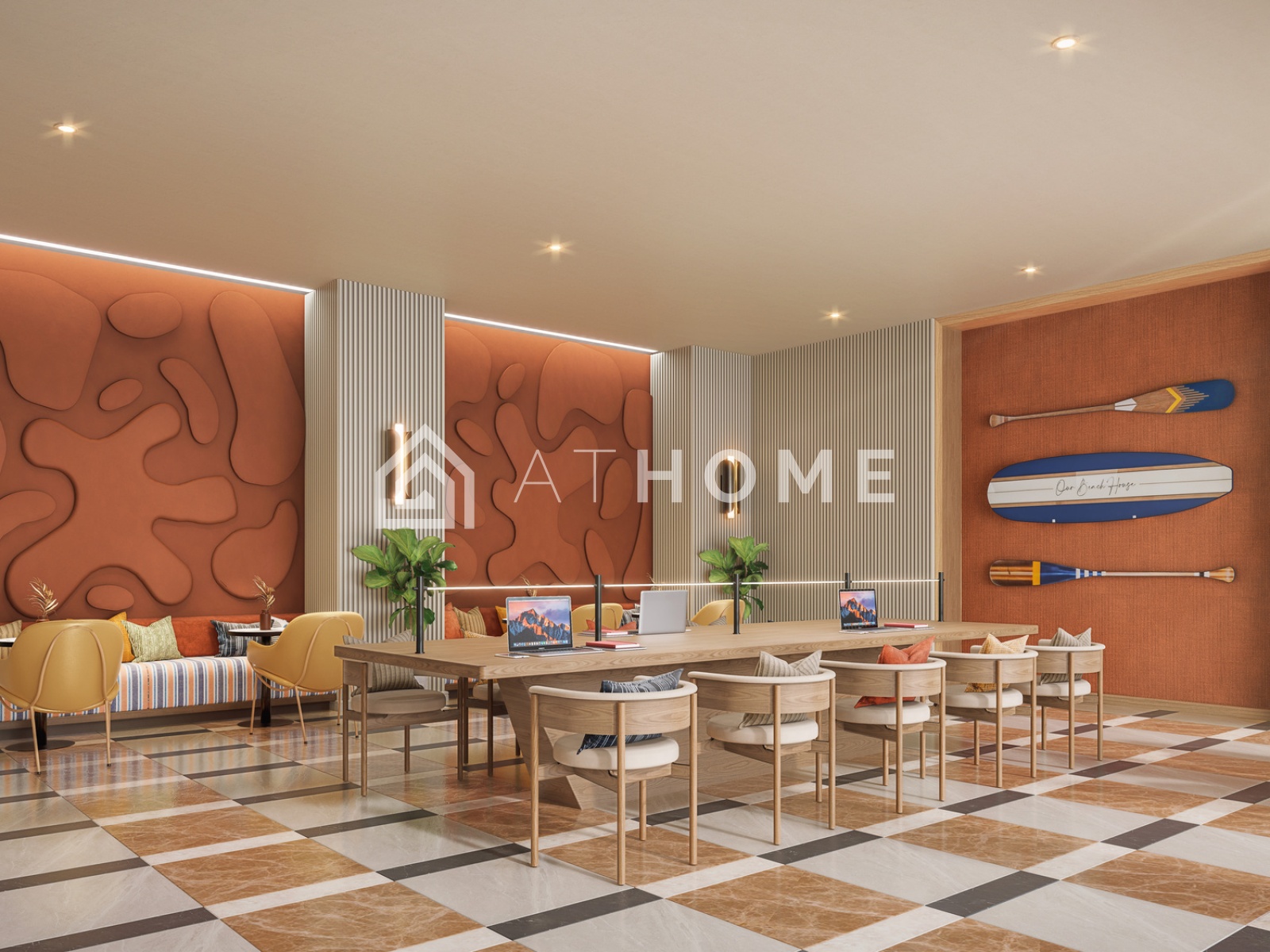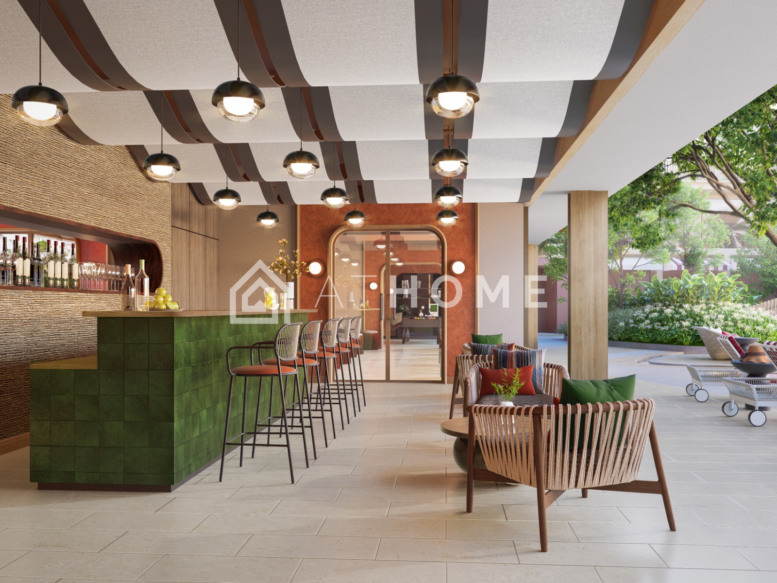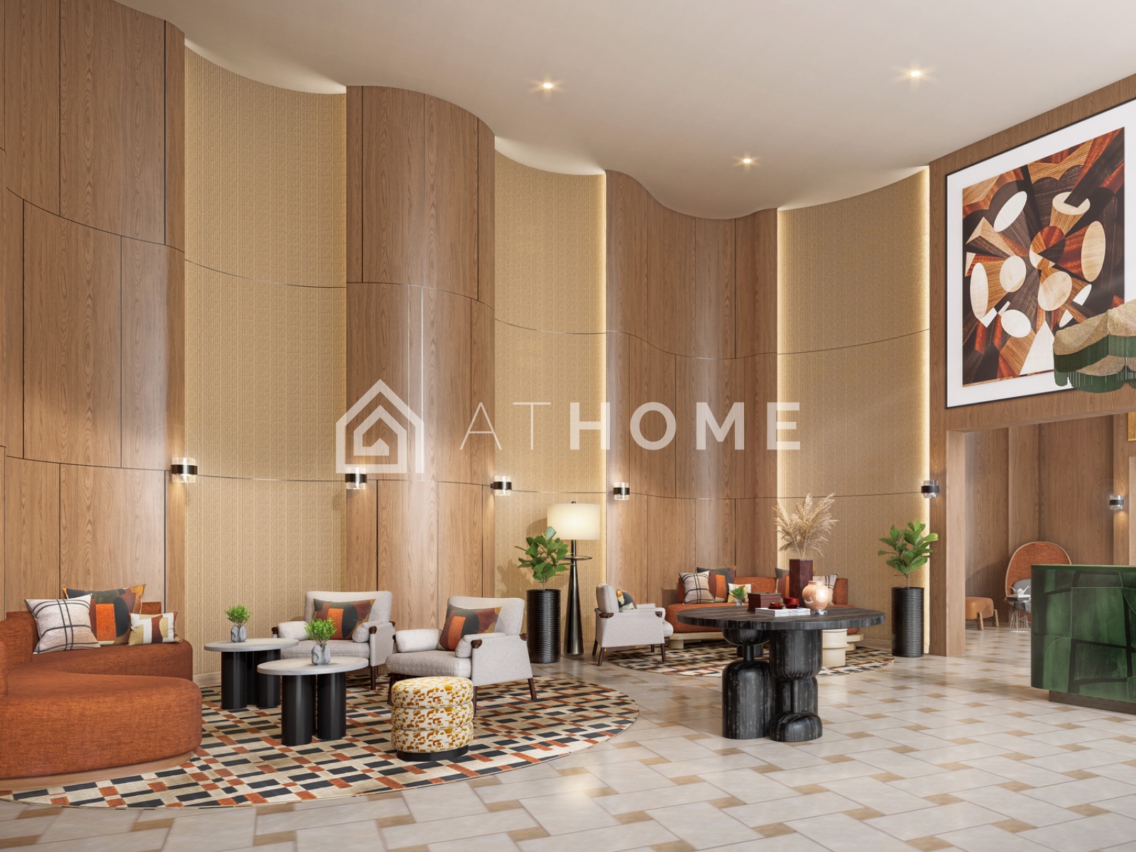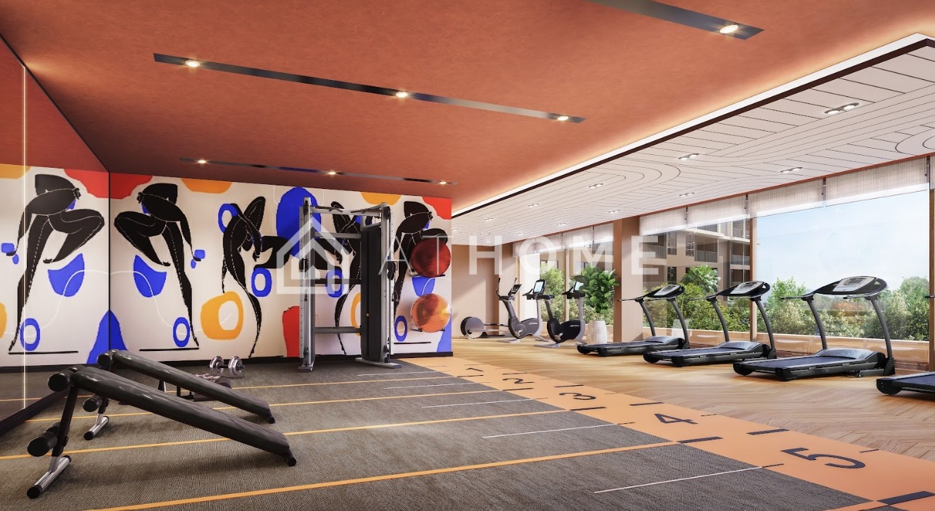 - Indoor facilities: fitness center, coworking space, lounge areas, lobby with reception.