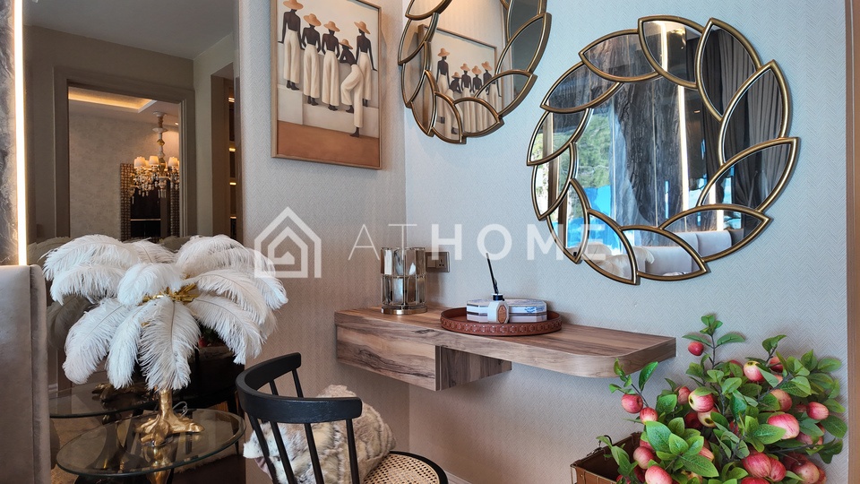 The project is designed as an elegant 34-storey tower with thoughtful layouts — from studios to large multi-room units and penthouses. Buildings are oriented to maximize views, privacy and on-site amenities: lobby, gym, multiple pools, spa and communal lounge areas.