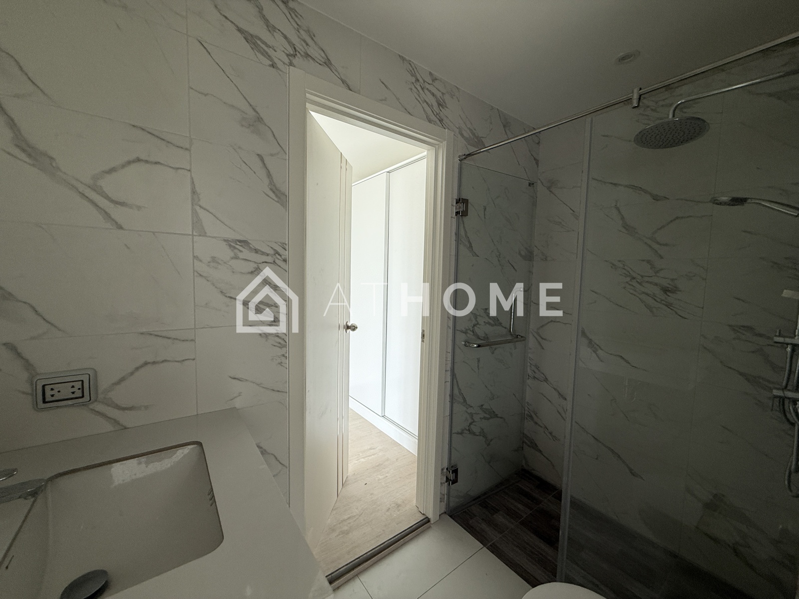 Residents have access to a rooftop swimming pool with sea views, a fitness room, Finnish sauna, underground parking, reception desk, 24/7 security and CCTV. The building features an elevator, Wi-Fi, and a backup generator. There are commercial spaces on the ground floor.