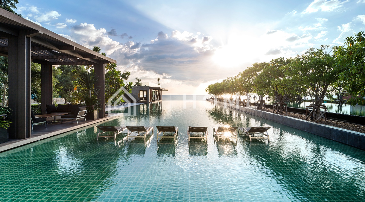 Reflection Jomtien Beach Pattaya is a premium condominium located directly on Jomtien Beach, offering stunning panoramic views of the Gulf of Thailand. The project consists of two high-rise towers with modern apartments designed for living, vacation, and investment.