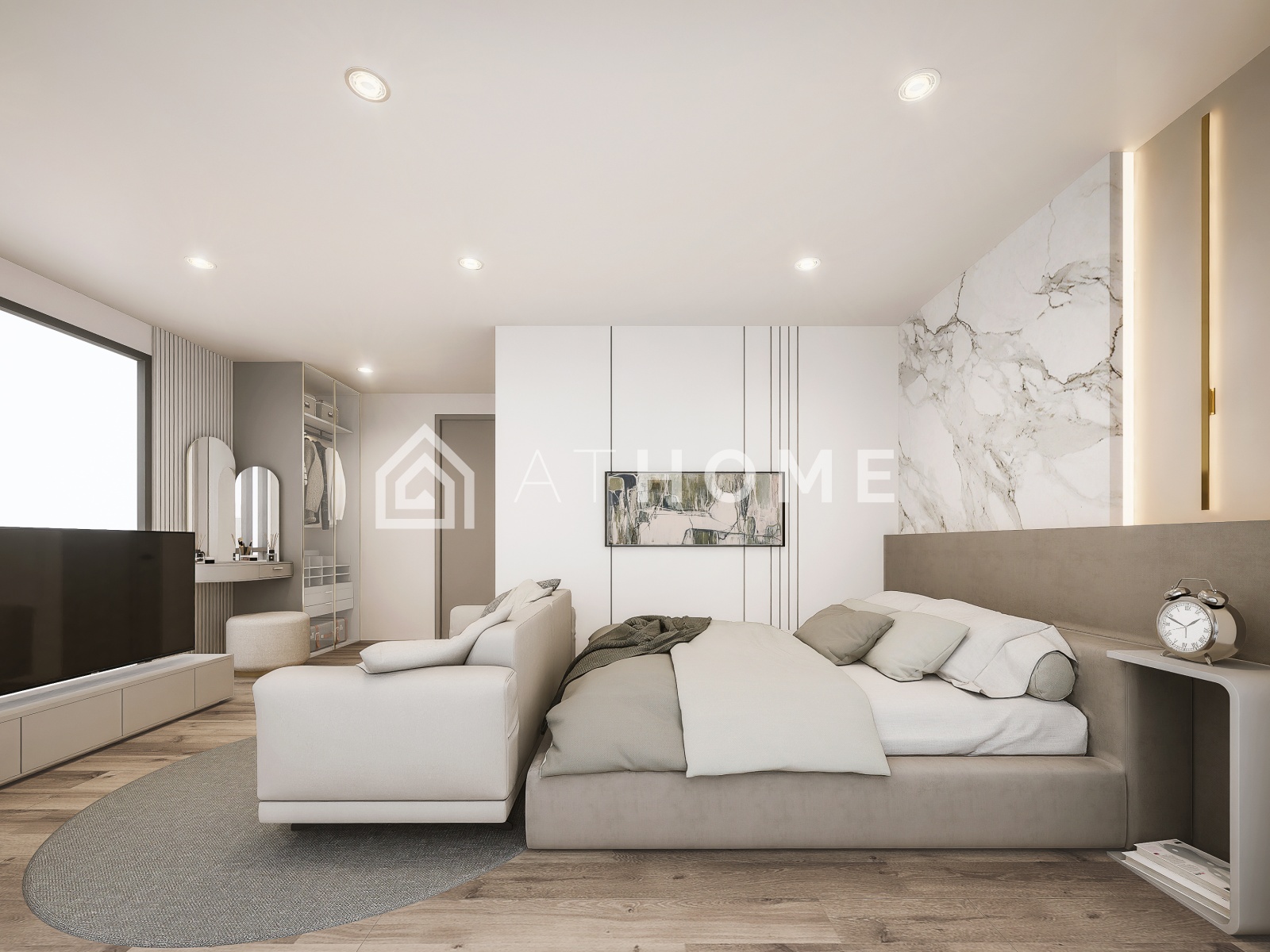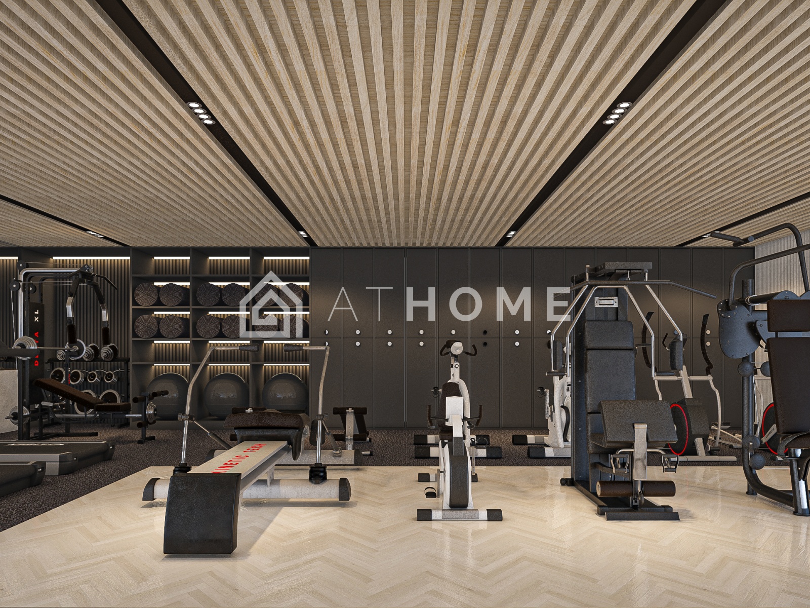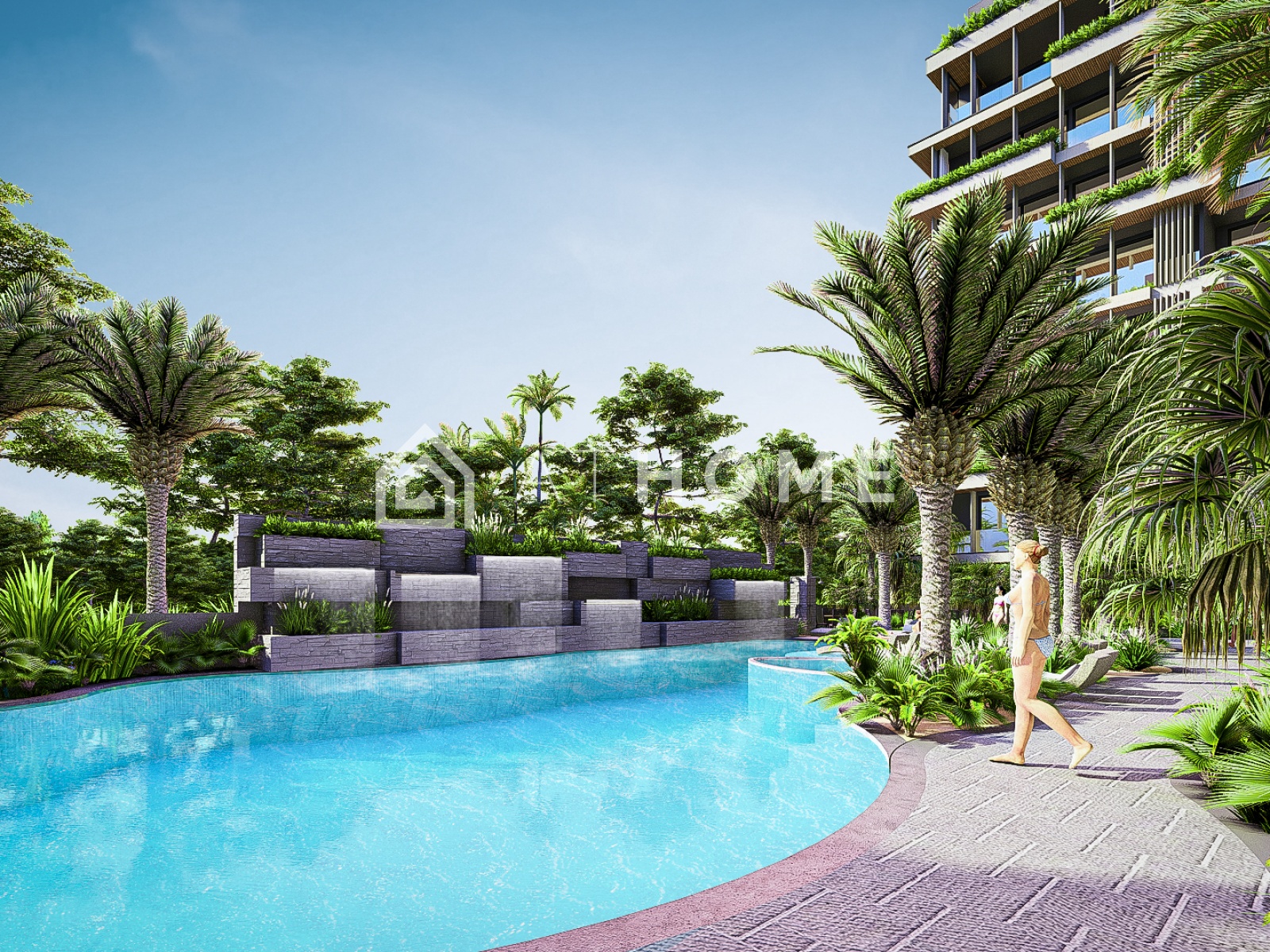 The residence includes a swimming pool, fitness center, underground parking, reception, elevators, lounge area, CCTV, and 24/7 security. Solar panels are installed on the roof to reduce electricity costs. The project features a cozy and low-density living environment.