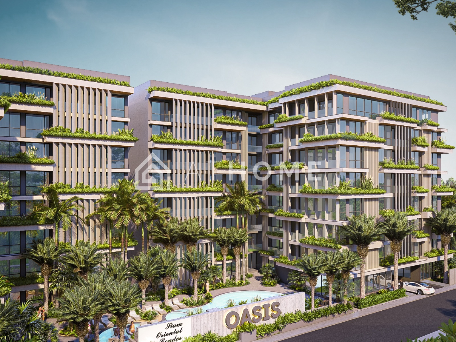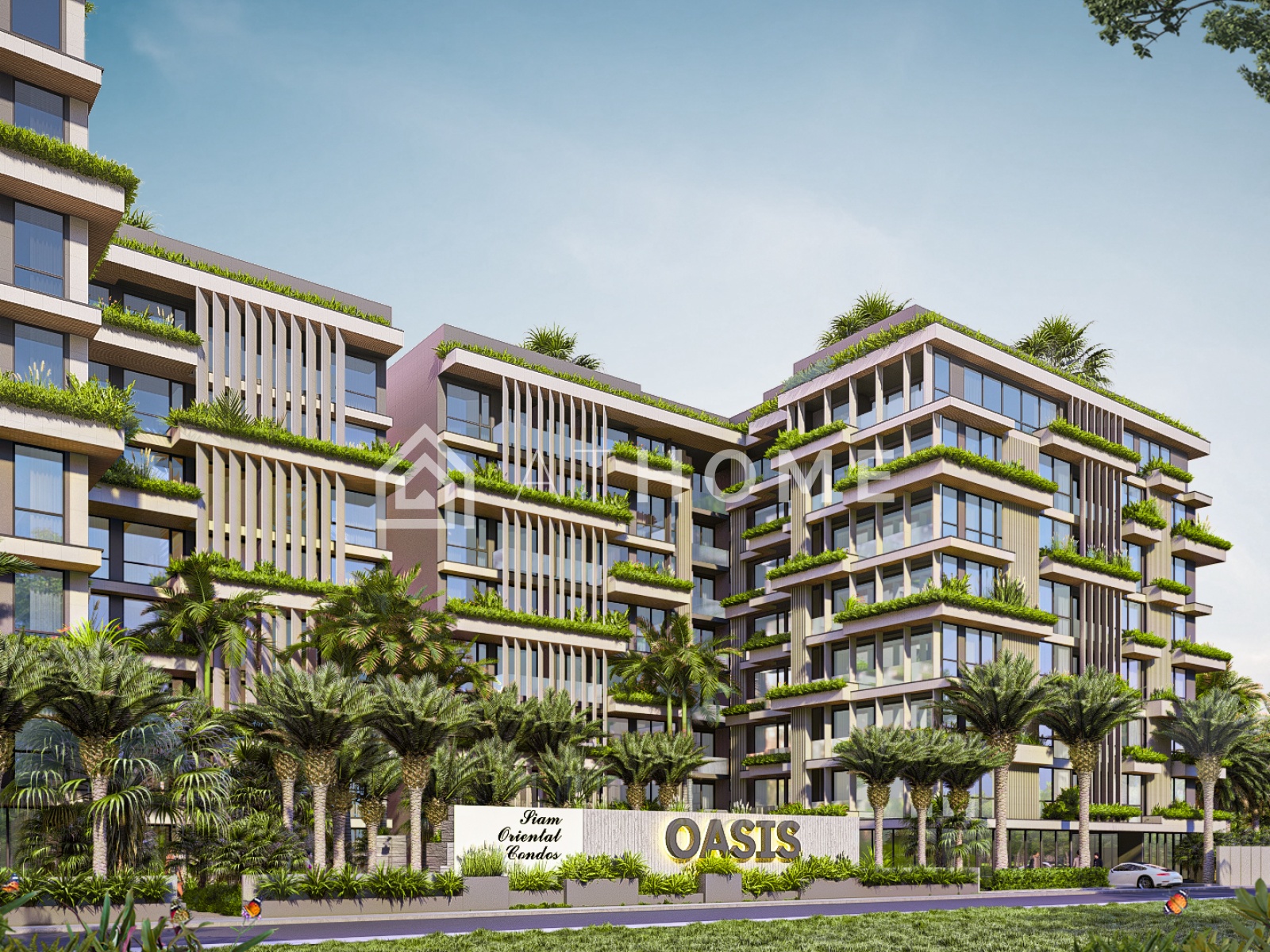 Siam Oriental Oasis is a modern 8-story condominium with 79 Scandinavian-style units. The project is focused on the European market and offers functional layouts, balconies, and full furniture packages. All units are delivered fully furnished — including a kitchen set, appliances, and air conditioners.