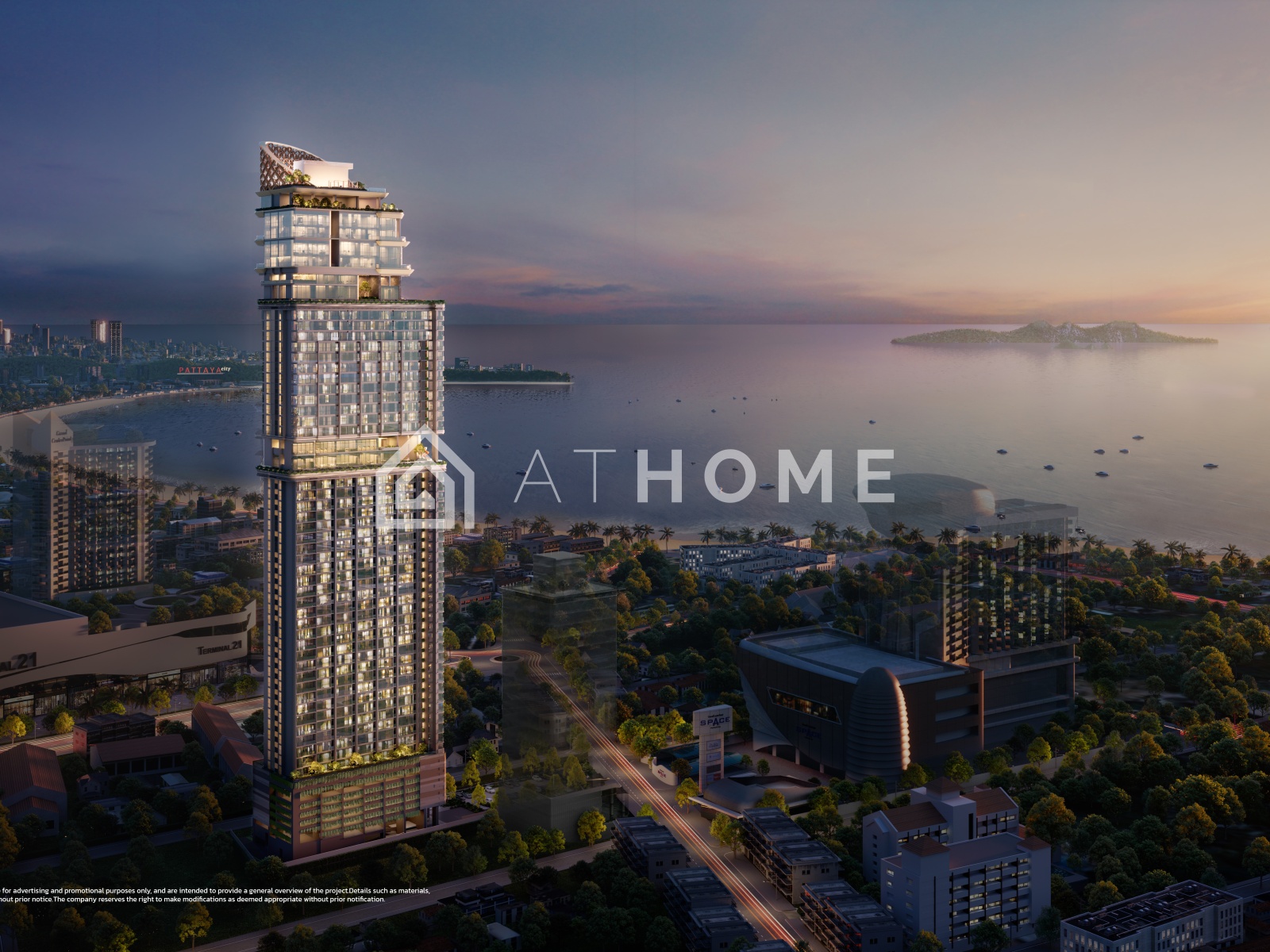 ONCE Wongamat is a 32-storey residential tower with panoramic views of the Gulf of Thailand and Pattaya city. It features studios and 1–2 bedroom apartments ranging from 28 to 60 sqm. All units come fully finished with modern interiors, built-in furniture, and appliances.