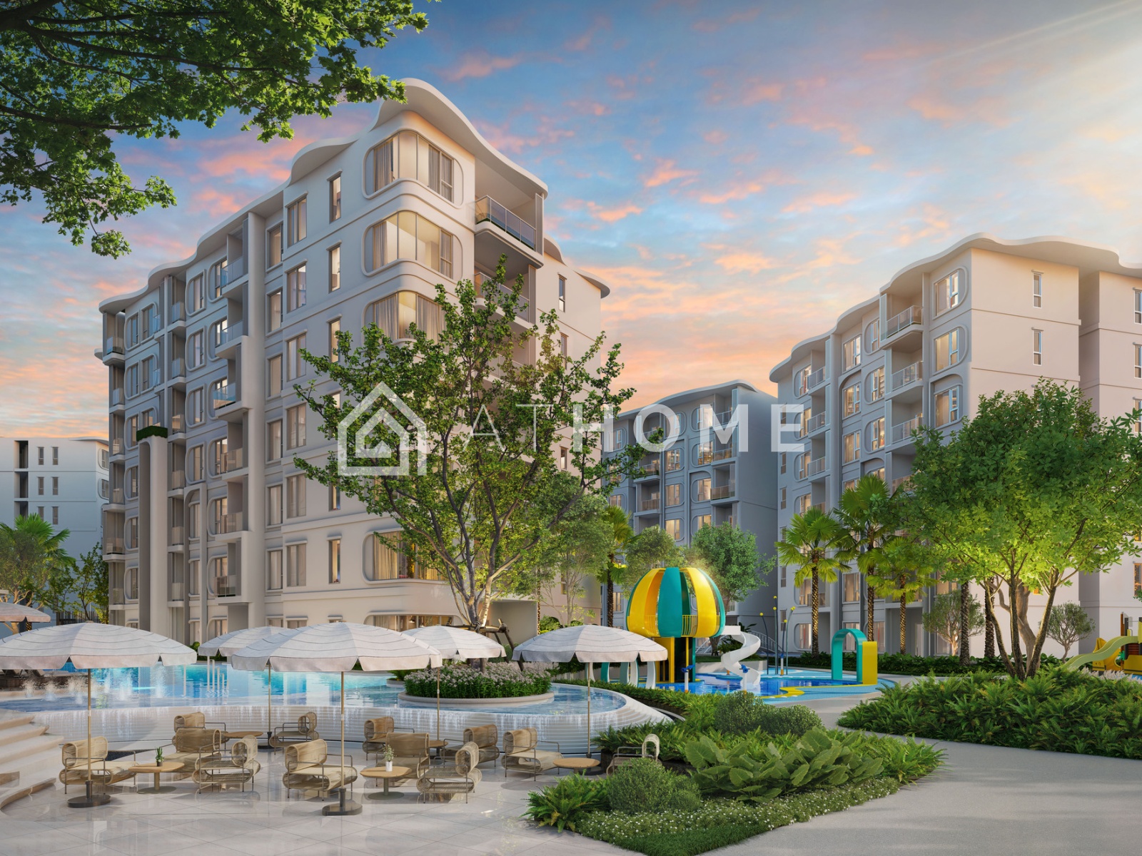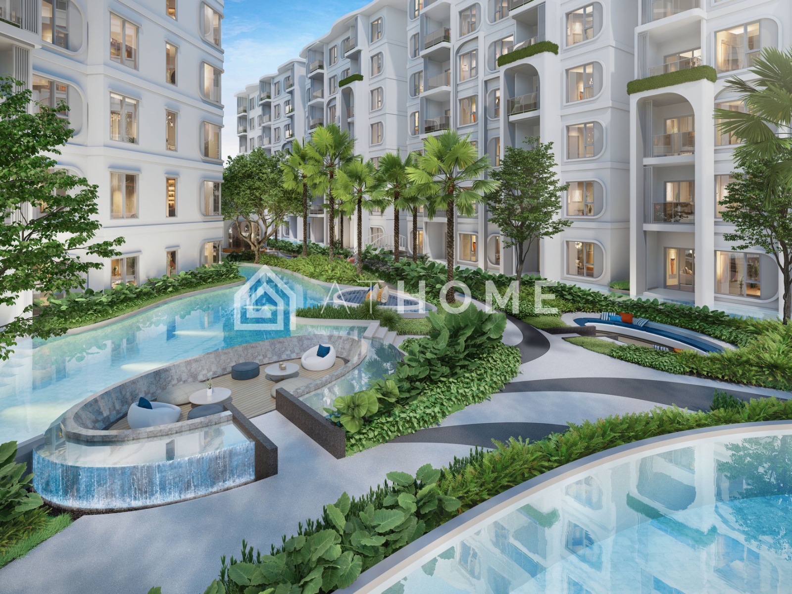 The project features a tropical design with minimalist elements. The Title Serenity Naiyang consists of several 7-storey buildings offering a range of units from studios to two-bedroom apartments. The concept emphasizes privacy, tranquility, and harmony with nature. The grounds are lush with greenery and include a private walking area.