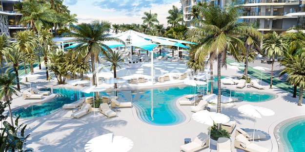 Residents have access to a swimming pool, relaxation areas, fitness facilities, reception services, parking, and 24/7 security with CCTV. The landscaped common areas create a modern resort-style atmosphere.