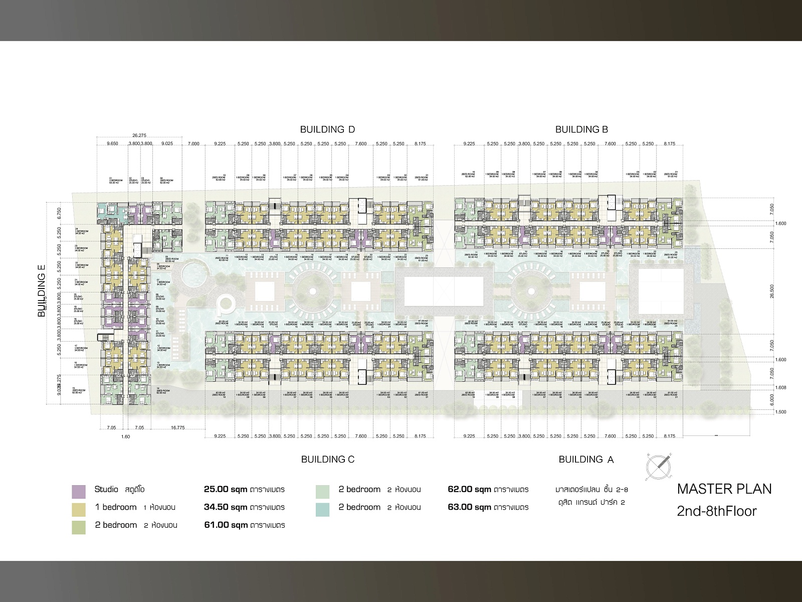 Dusit Grand Park 2 is a secure gated community consisting of six 8-storey buildings surrounding a spacious tropical courtyard with pools and gardens. The project offers over 1,100 fully furnished apartments starting from 26 m², complete with furniture, appliances, and stylish finishes — perfect for personal use or investment.