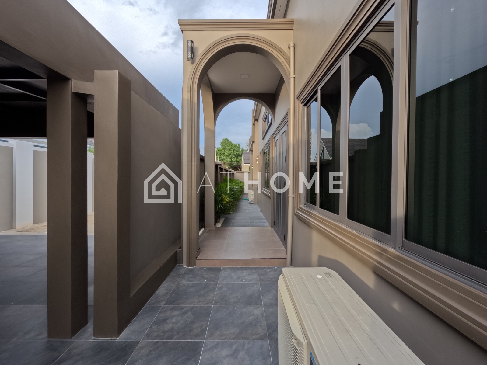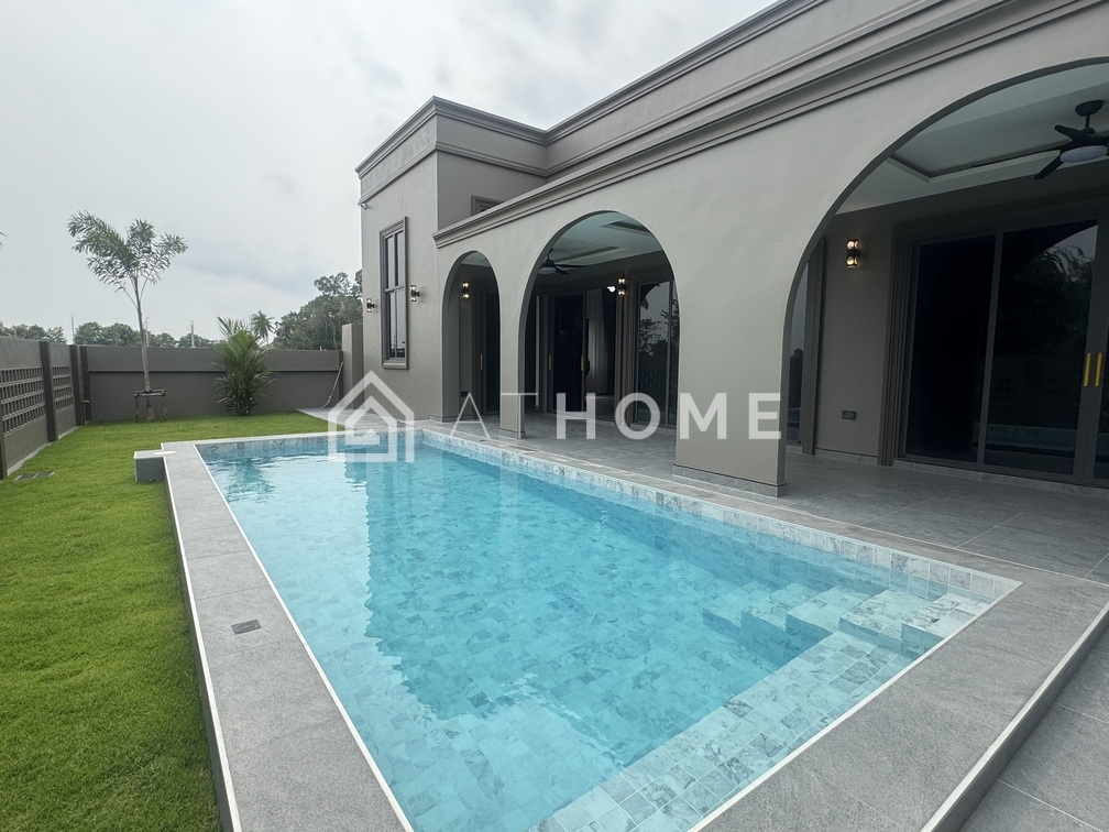 The project offers 24/7 security, CCTV, automatic gate access, landscaped communal areas, and wide internal roads. Nearby are top international schools (Regents and Rugby School), golf courses, cafes, parks, and quick access to the Bangkok motorway.