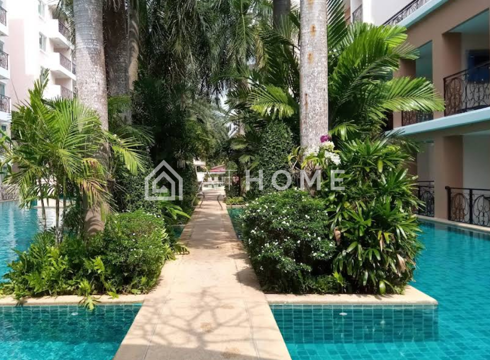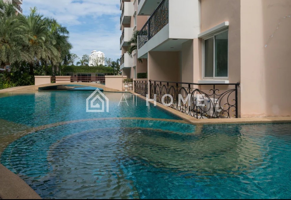 Residents enjoy a large lagoon-style swimming pool surrounded by lush gardens, sun decks, a fitness center, restaurant, reception, parking, and 24-hour security. The complex is well maintained and offers a calm, private environment — ideal for relaxation and resort living.