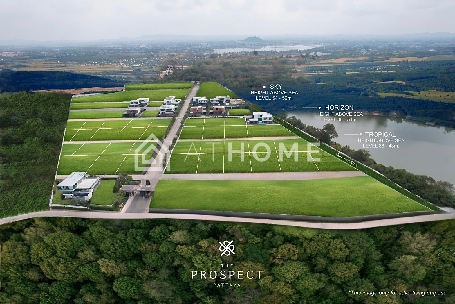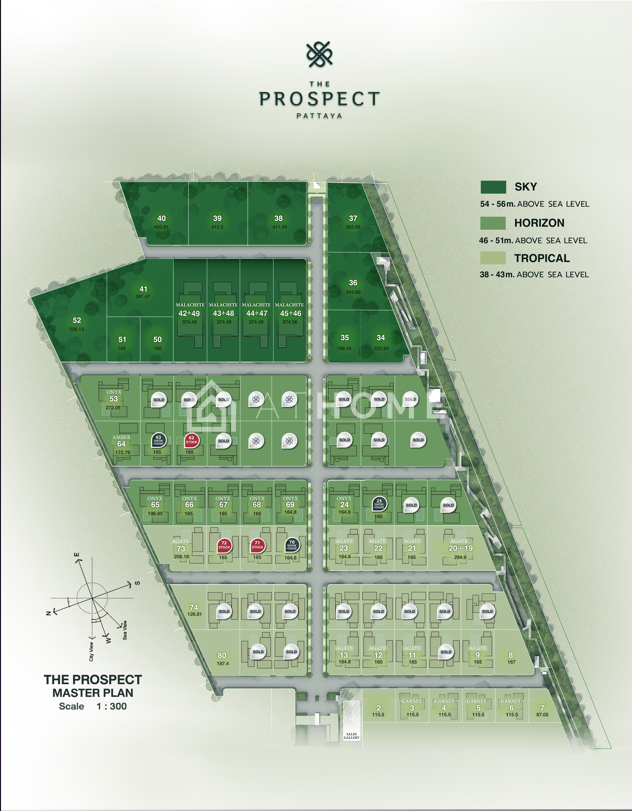 Prospect Villas is a gated villa community featuring modern private pool villas of roughly 340 m² and larger. Houses are executed in a contemporary tropical-minimalist style with large glazed façades, open terraces, private pools and gardens. The project targets buyers who want a quiet green environment while remaining within easy reach of Pattaya’s beaches and infrastructure.