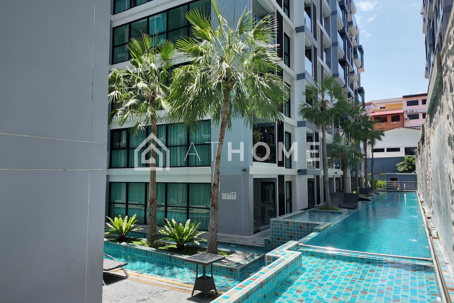 Siam Oriental Tropical Garden is a gated residential complex of three 8-story buildings set around lush tropical gardens and pools. It features 427 fully finished apartments ranging from 25 to 76 m²: studios, one-bedroom, and two-bedroom units with kitchen and bathroom. Ideal for both personal use and rental investment.