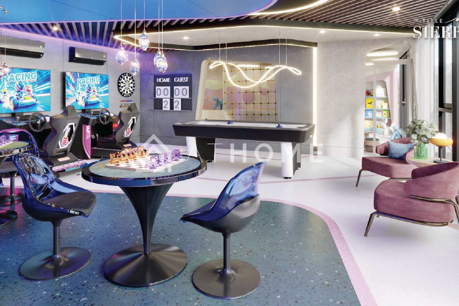 - Game room with consoles and board games