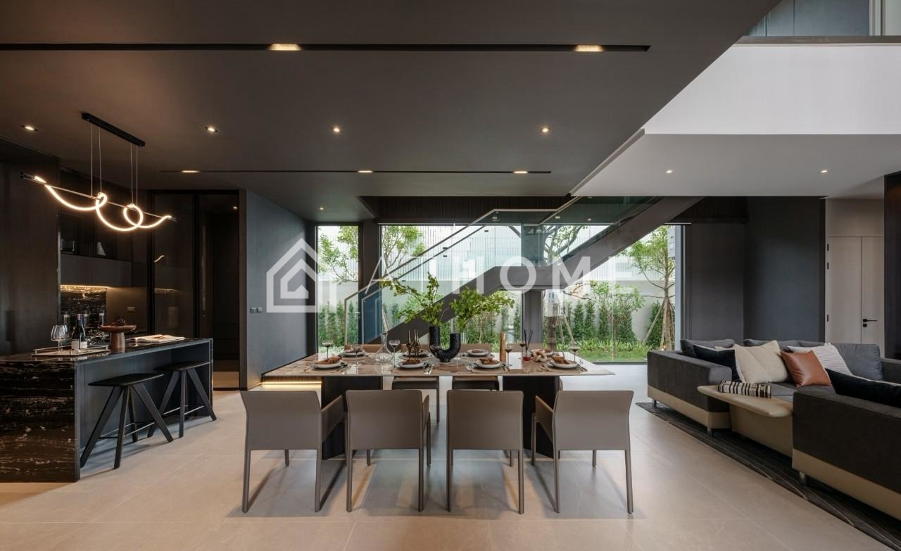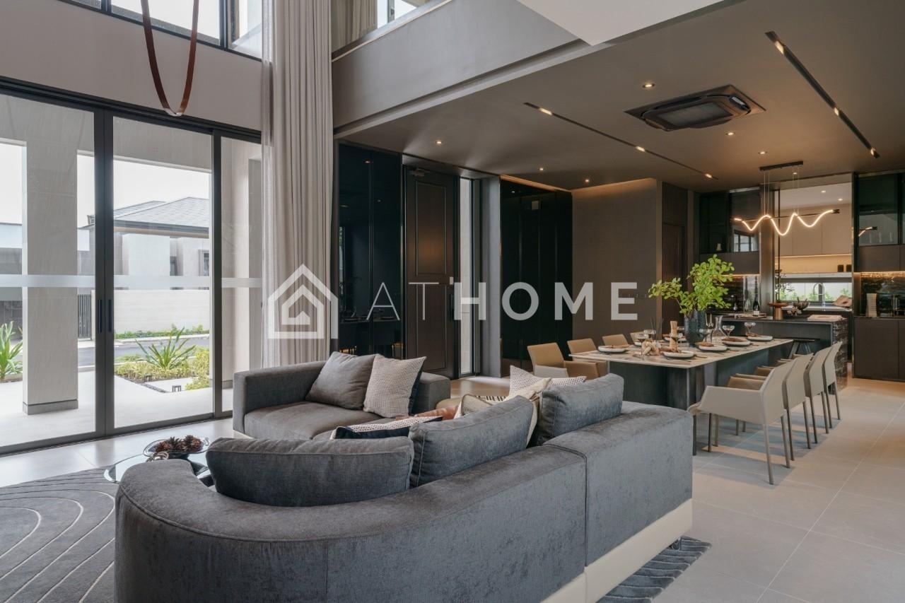 Residents enjoy access to a clubhouse with a fitness center and lounge, green alleys, walking areas, a playground, and 24/7 security. Each villa features a large kitchen, open-plan living room with high ceilings, terrace, and private garden.
