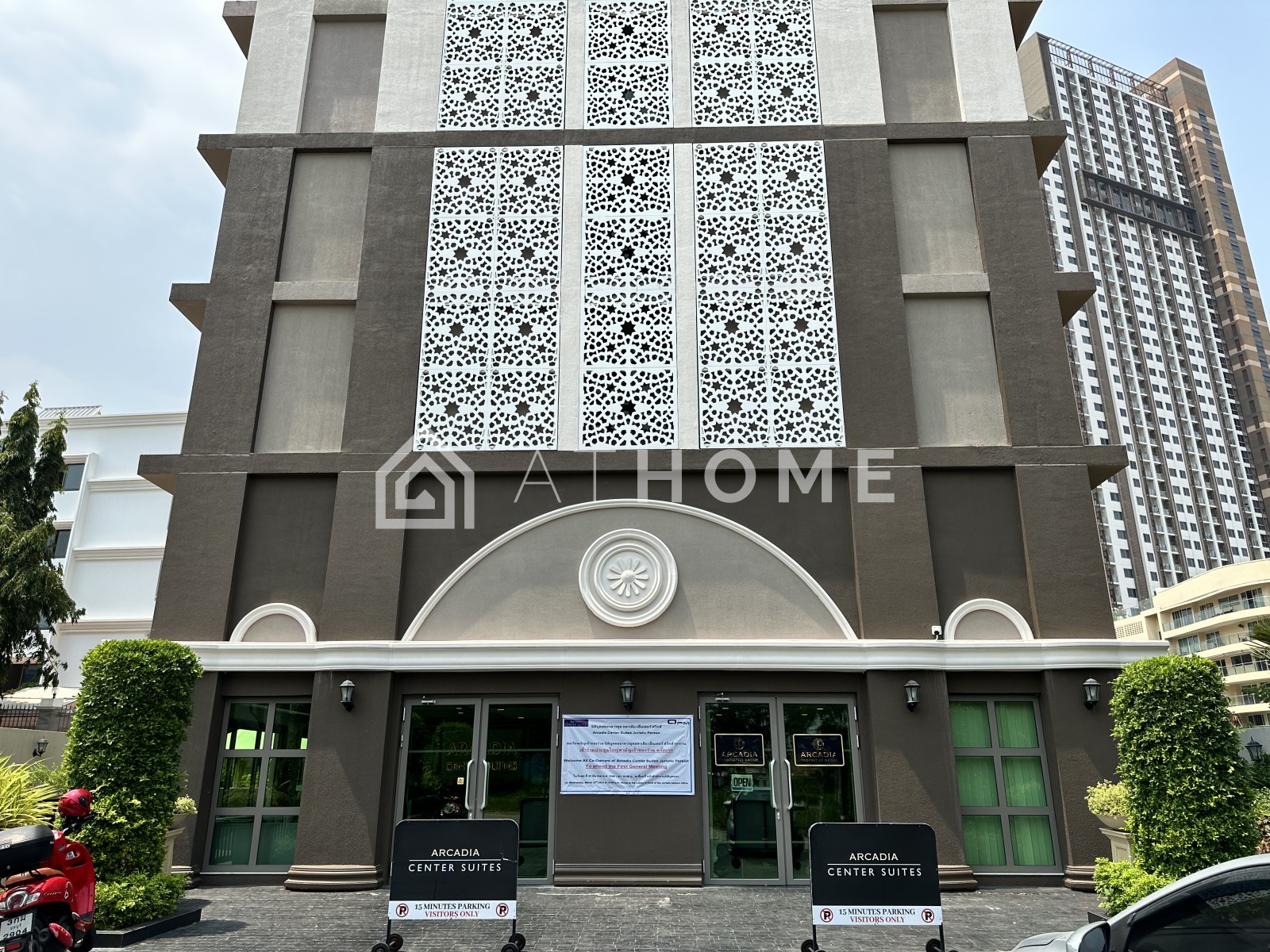 Комплекс расположен на улице Thappraya Soi 4, в районе Пратамнак, в пешей доступности от парка Будды, пляжа Cozy Beach и оживлённой улицы Тепразит. До Walking Street и центра города — около 5–7 минут на транспорте. Удобное расположение делает Arcadia Center Suites отличным вариантом для жизни и инвестиций.