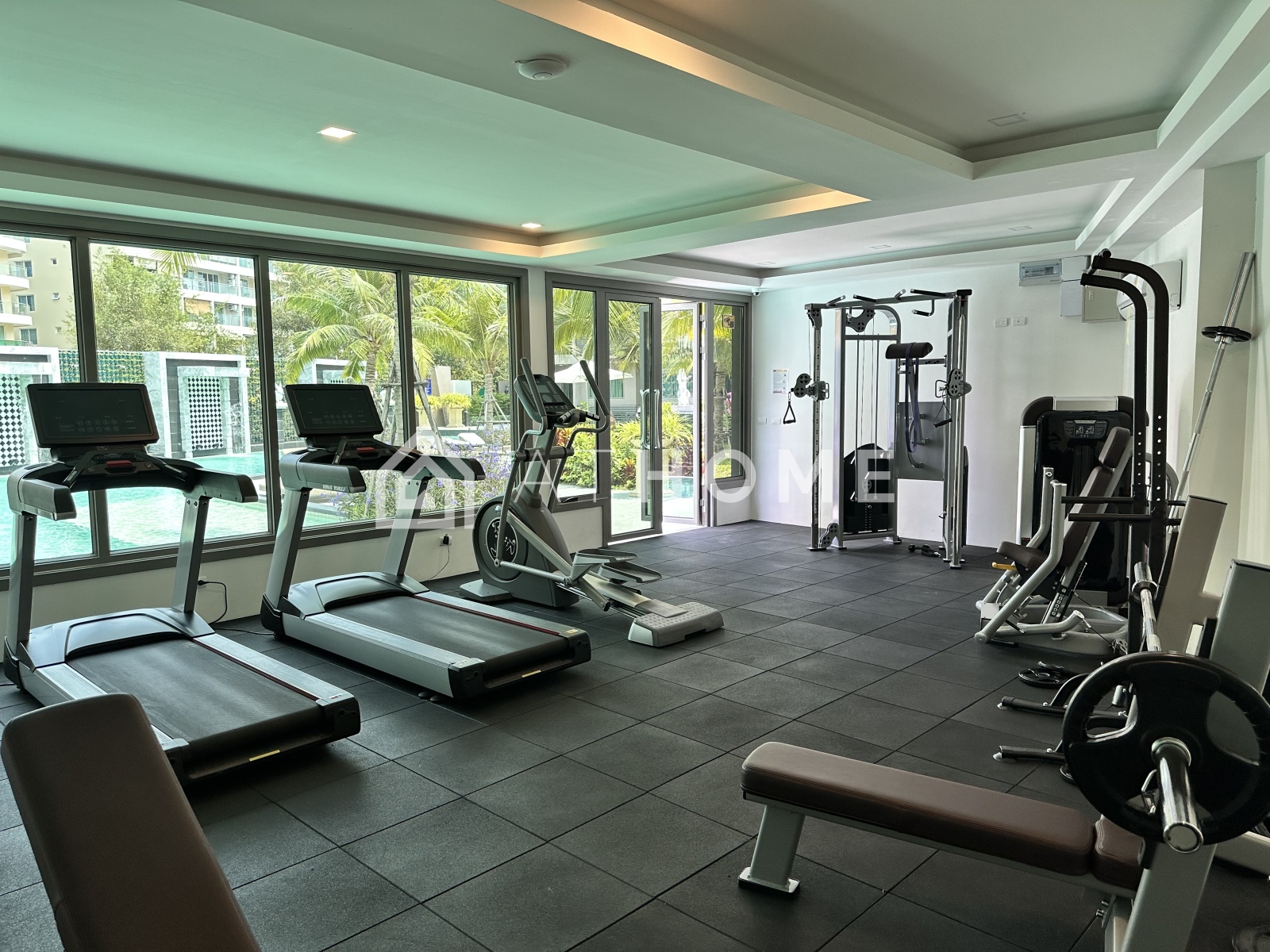 Жителям доступны: просторный открытый бассейн с шезлонгами, тренажёрный зал, спа, сауна, лобби с ресепшеном, охрана 24/7, видеонаблюдение, подземная парковка. В квартирах — умные системы управления, интернет, качественная мебель и техника.