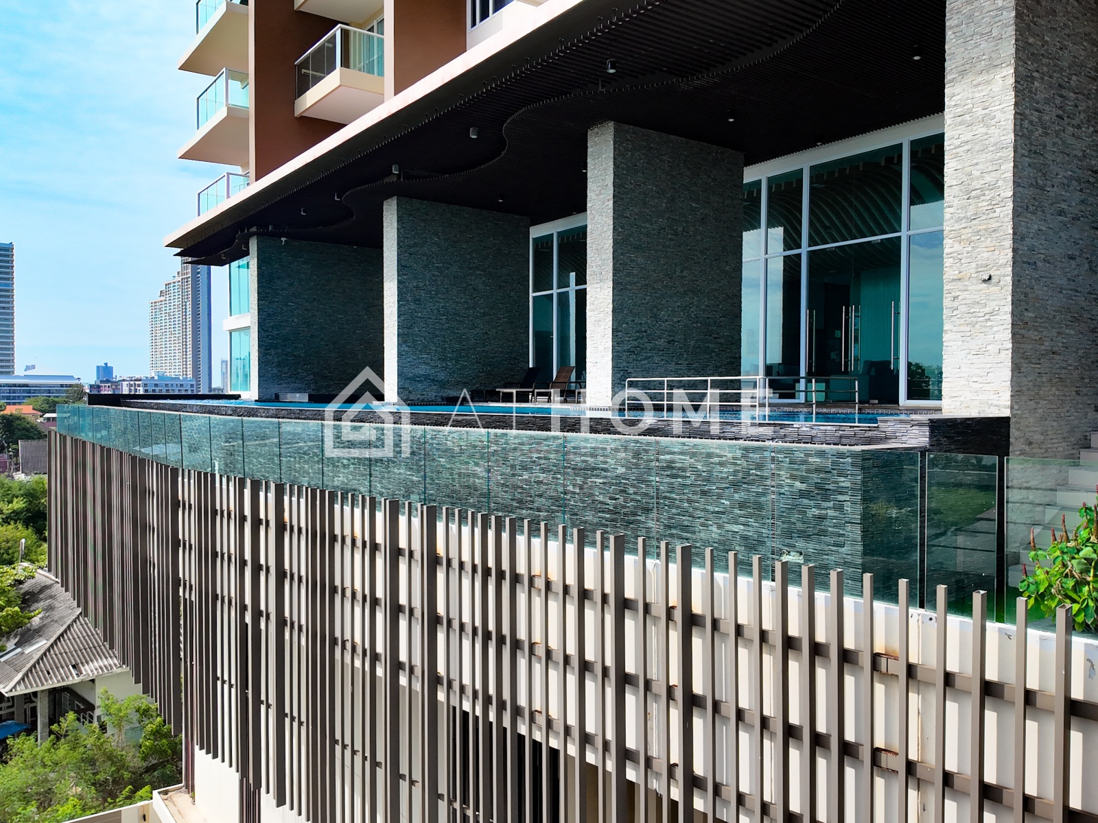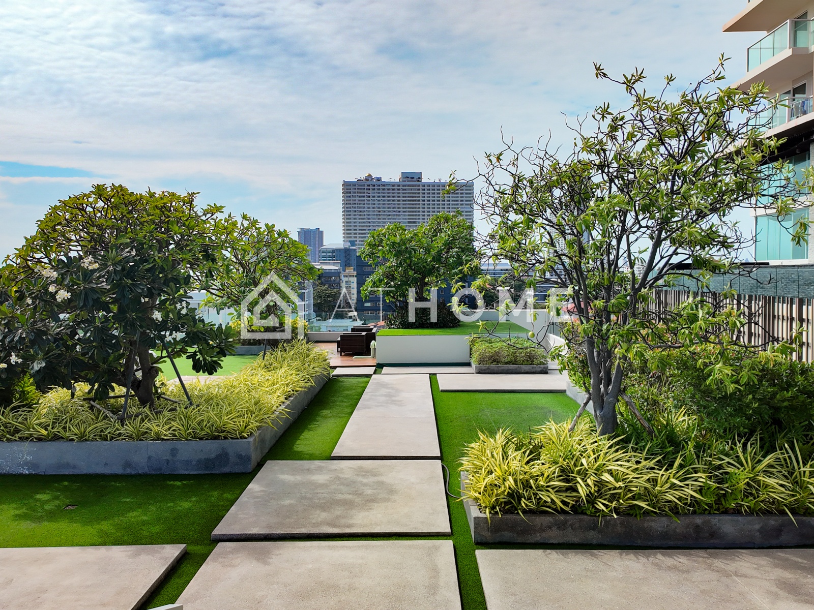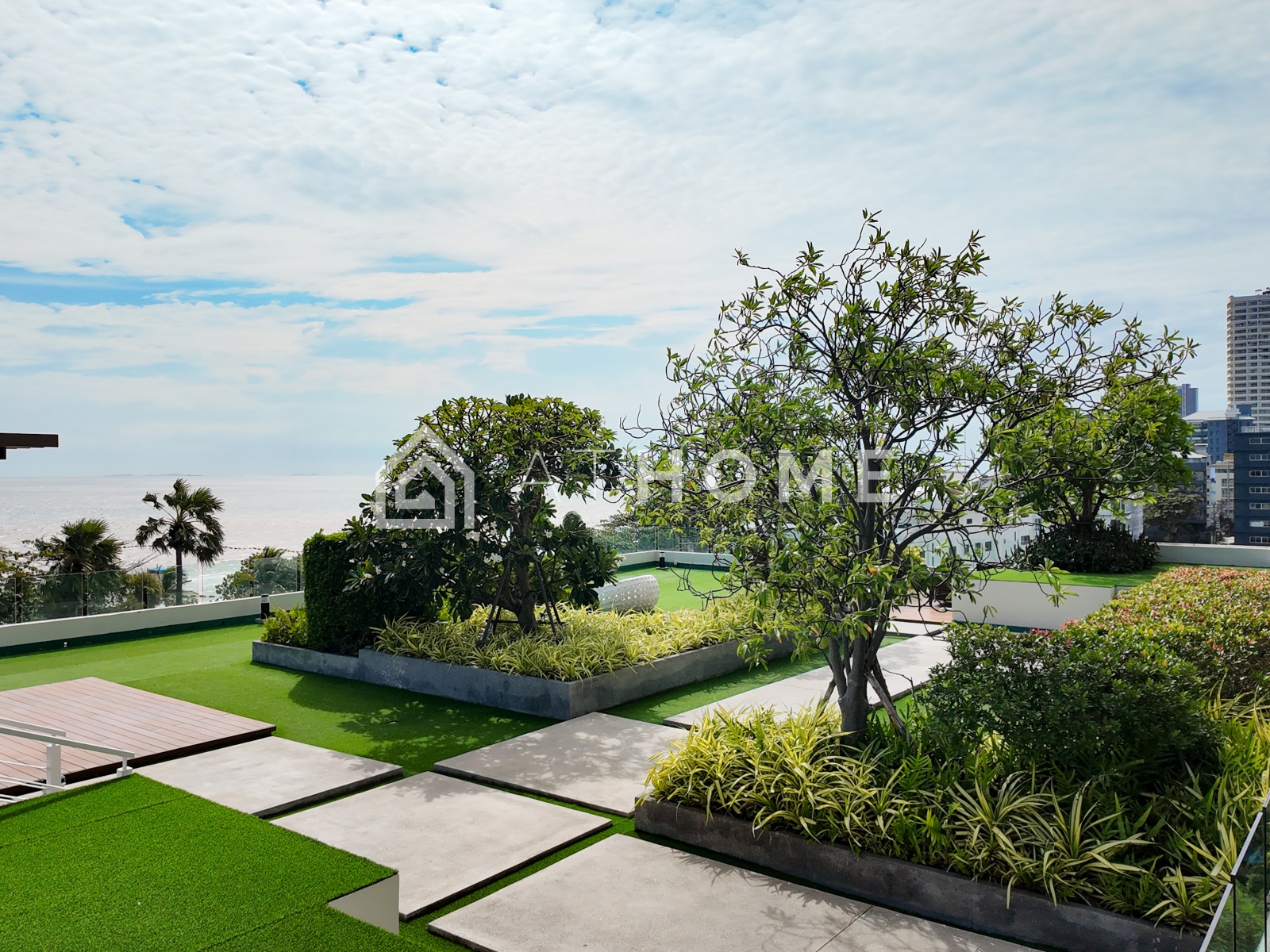 В комплексе доступны два бассейна с видом на море — на первом этаже и на крыше, современный фитнес-центр с панорамными окнами, сауна, лобби, круглосуточная охрана, видеонаблюдение, подземная парковка и система контроля доступа. На территории — ухоженный тропический сад и зоны отдыха.