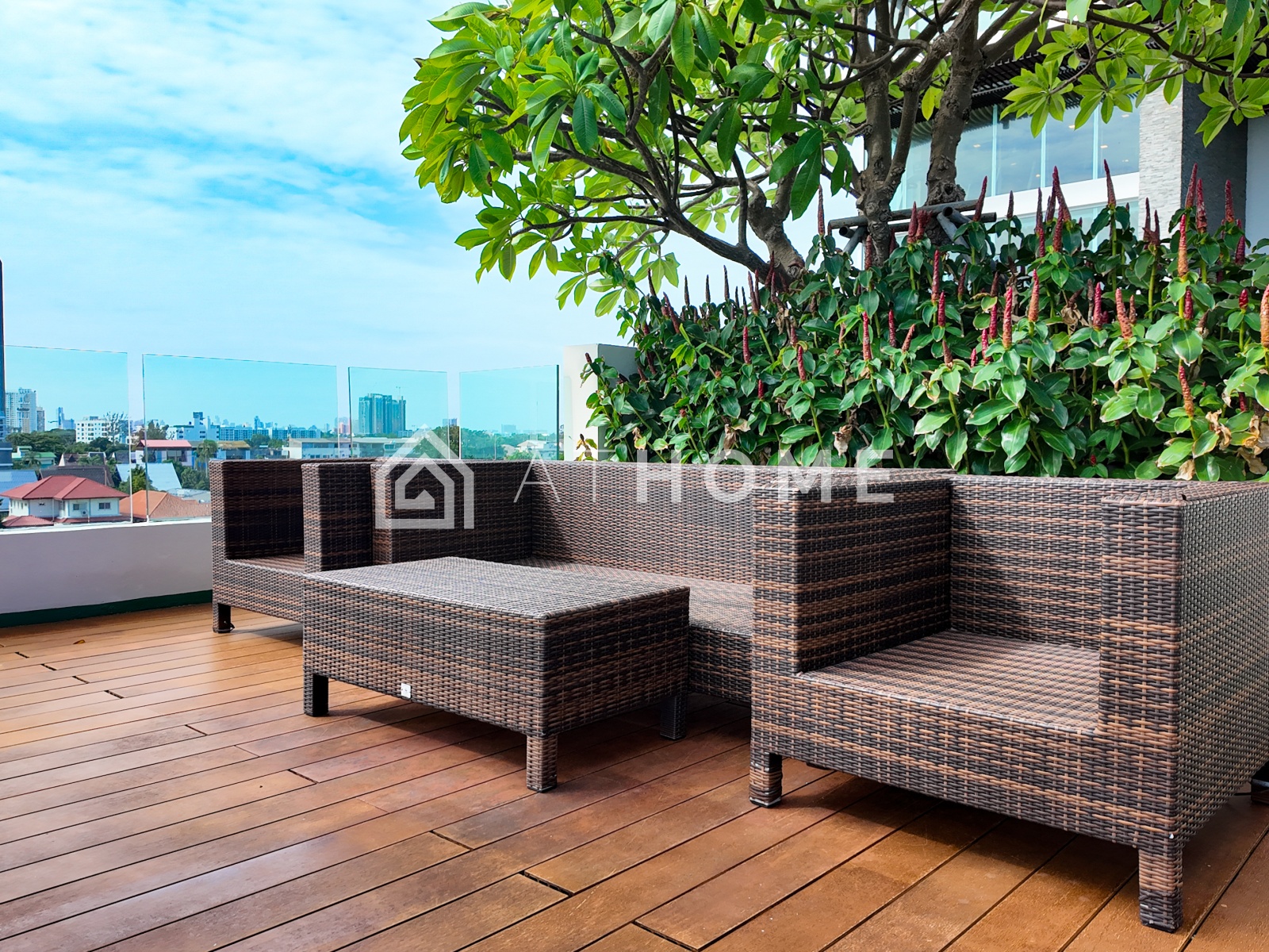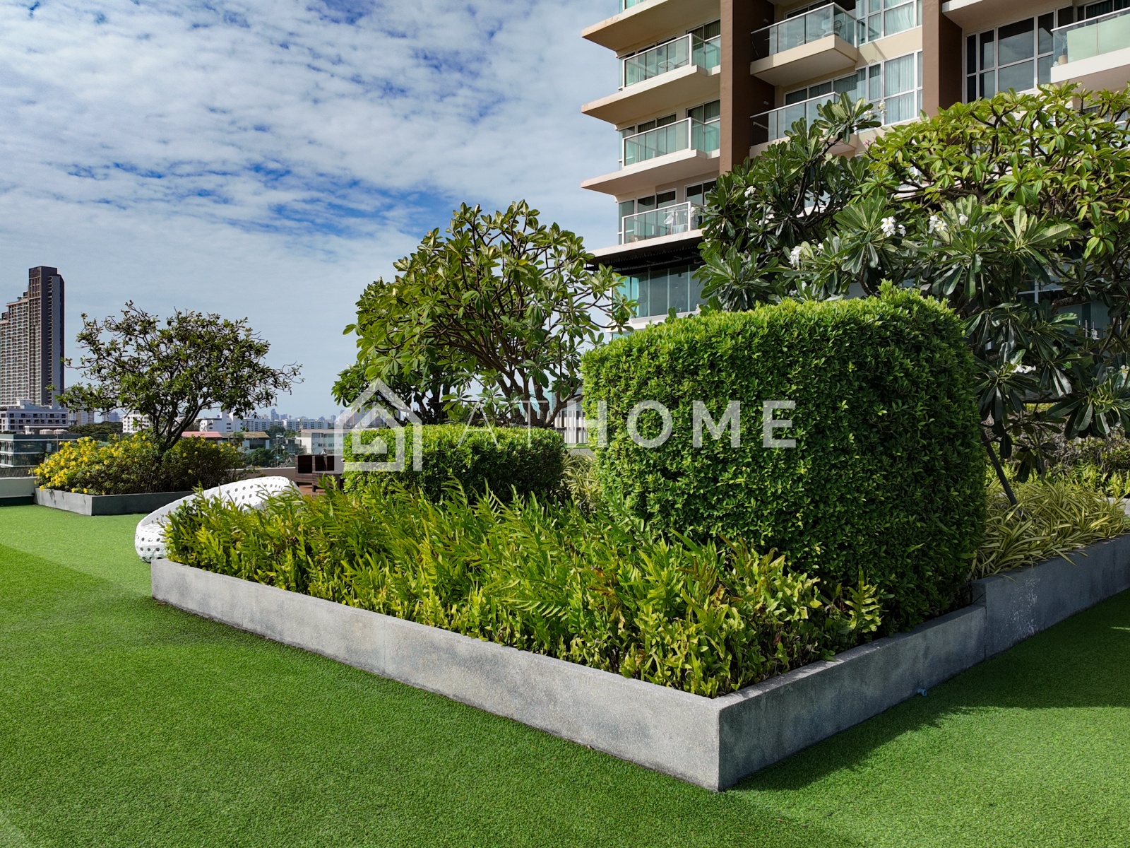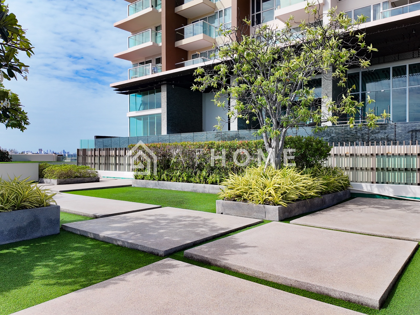 В комплексе доступны два бассейна с видом на море — на первом этаже и на крыше, современный фитнес-центр с панорамными окнами, сауна, лобби, круглосуточная охрана, видеонаблюдение, подземная парковка и система контроля доступа. На территории — ухоженный тропический сад и зоны отдыха.