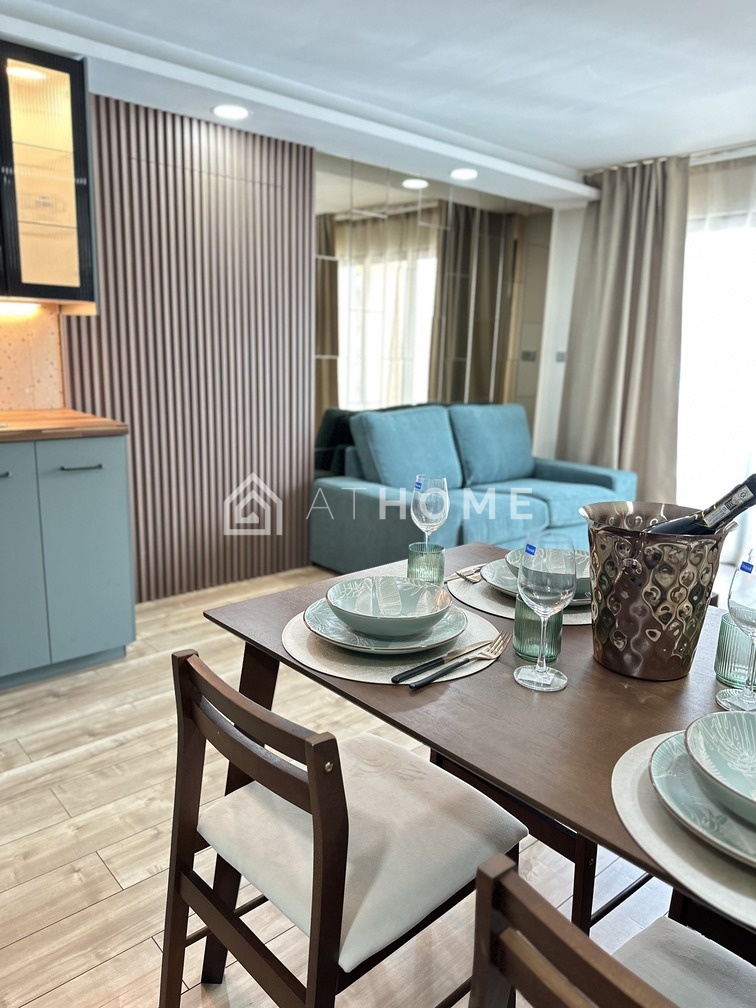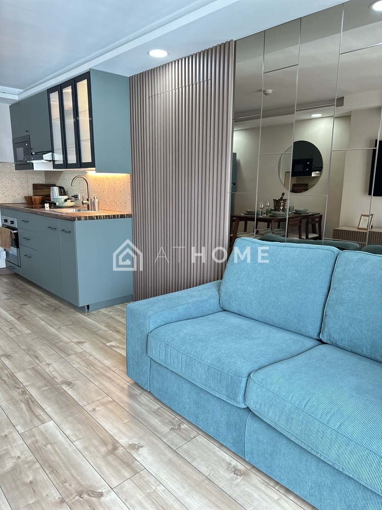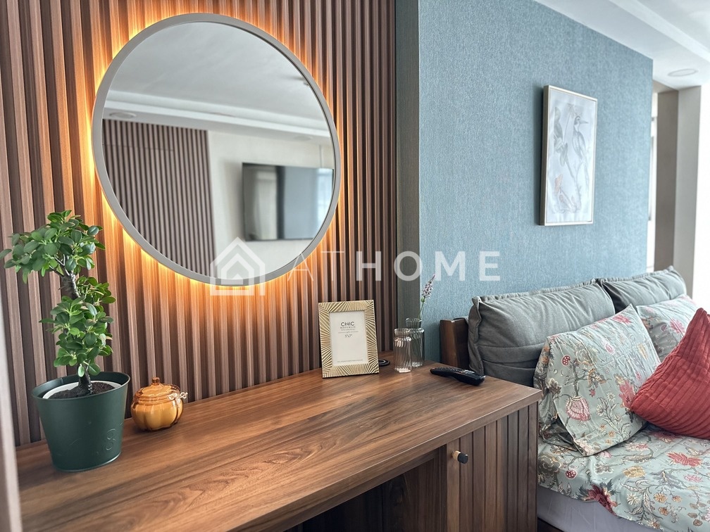 На территории — три открытых бассейна с террасами для загара, современный фитнес-зал, сад с зонами отдыха, ресепшен, парковка, видеонаблюдение и охрана. Комплекс отличается ухоженной территорией, тишиной и камерной атмосферой.