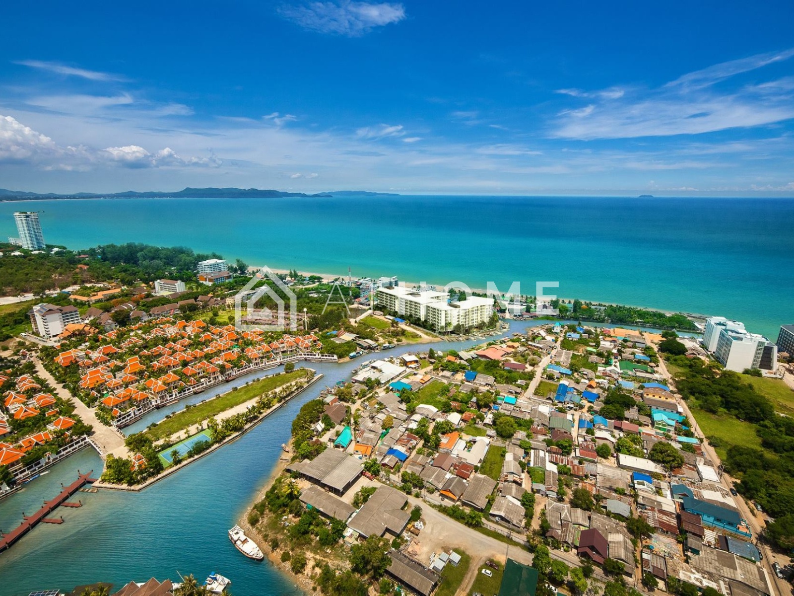 Комплекс расположен на первой линии в южной части Паттайи, в районе На-Джомтьен. Рядом — элитные виллы, рестораны, яхт-клуб Ocean Marina, винодельня Silverlake и популярные пляжи. Центр Паттайи и крупные торговые центры — в 15–20 минутах езды. Это уединённое, но развитое направление с высокой инвестиционной привлекательностью.