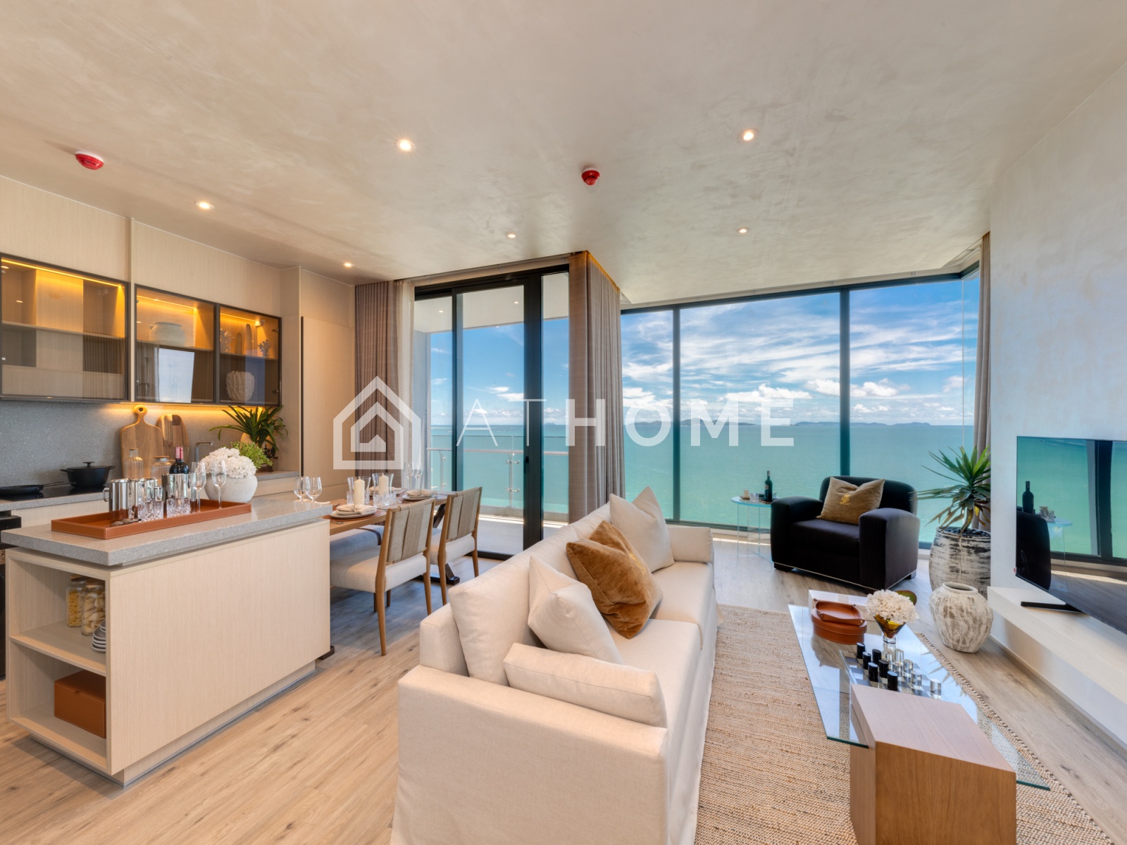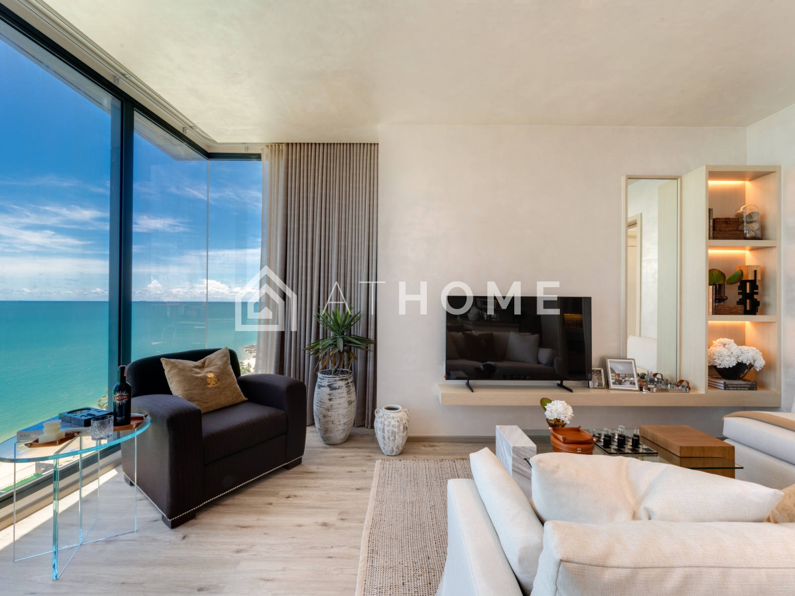 Arom Wongamat — это современный жилой комплекс, состоящий из одной 55-этажной башни, спроектированной таким образом, чтобы каждая квартира имела вид на море. Проект ориентирован на сегмент high-end: здесь просторные апартаменты с продуманными планировками, отделкой и мебелью премиум-уровня.