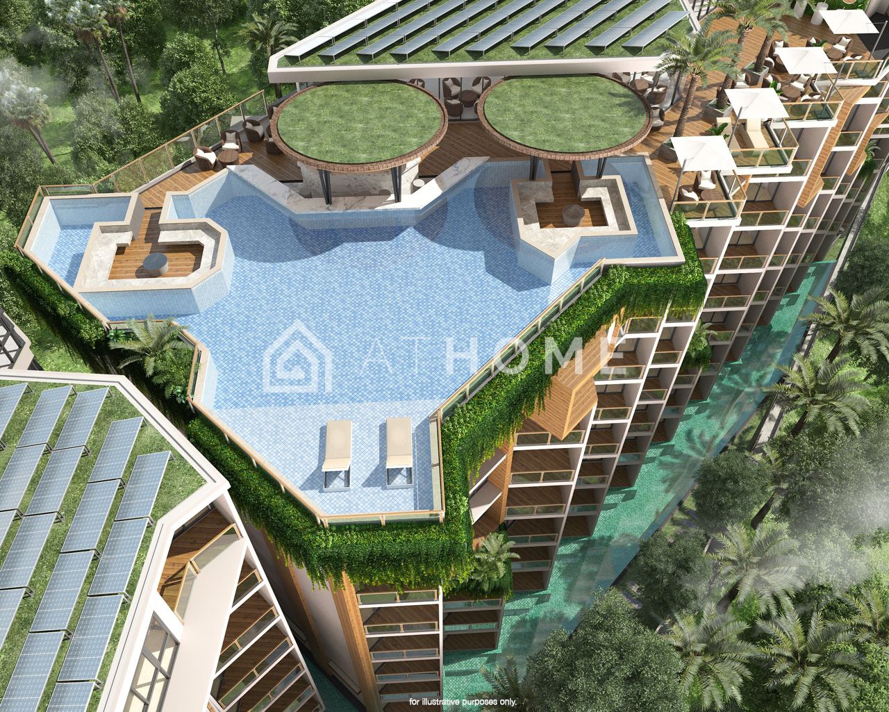 Serene Condo состоит из двух 8-этажных зданий и включает 186 юнитов: студии, апартаменты с 1 и 2 спальнями. Архитектура выполнена в эко-стиле с вертикальным озеленением, натуральными оттенками и современными материалами. Планировки продуманы таким образом, чтобы обеспечить максимальный комфорт, приватность и востребованность на аренде.