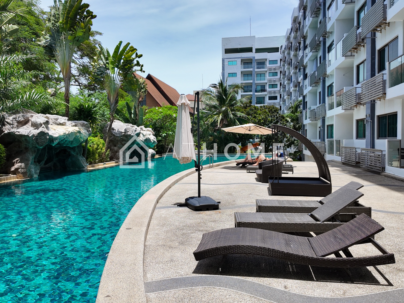 Проект расположен в престижной части района Вонгамат — всего в 200 метрах от пляжа. Рядом находится храм Истины, парки, рестораны, кафе и остановки общественного транспорта. До центра Паттайи и ТЦ Terminal 21 — 5–7 минут на транспорте.