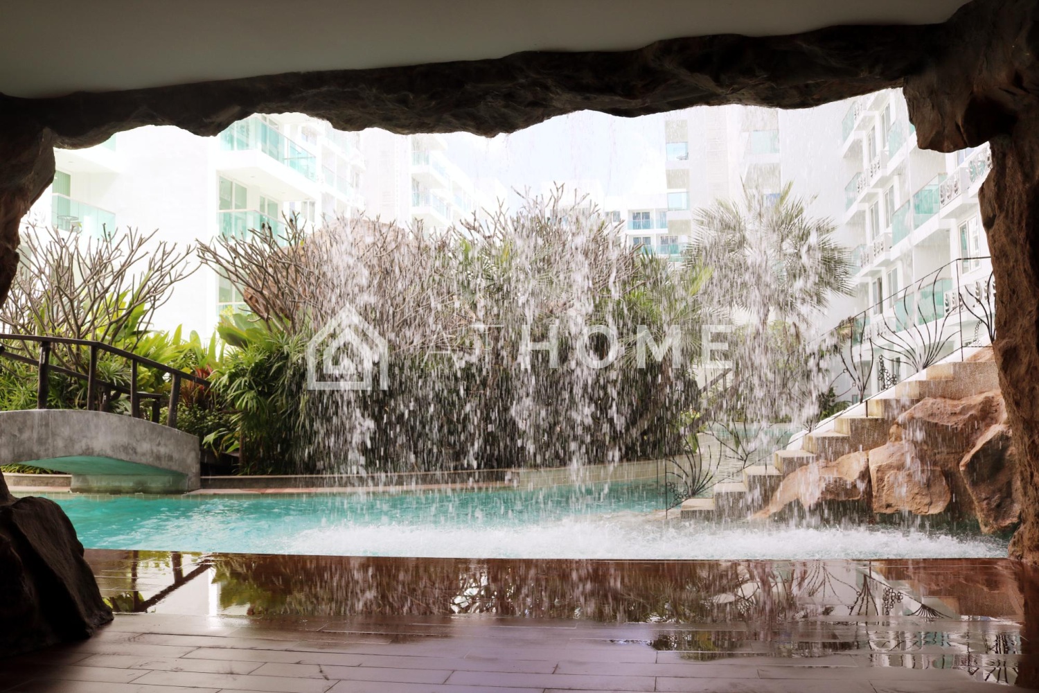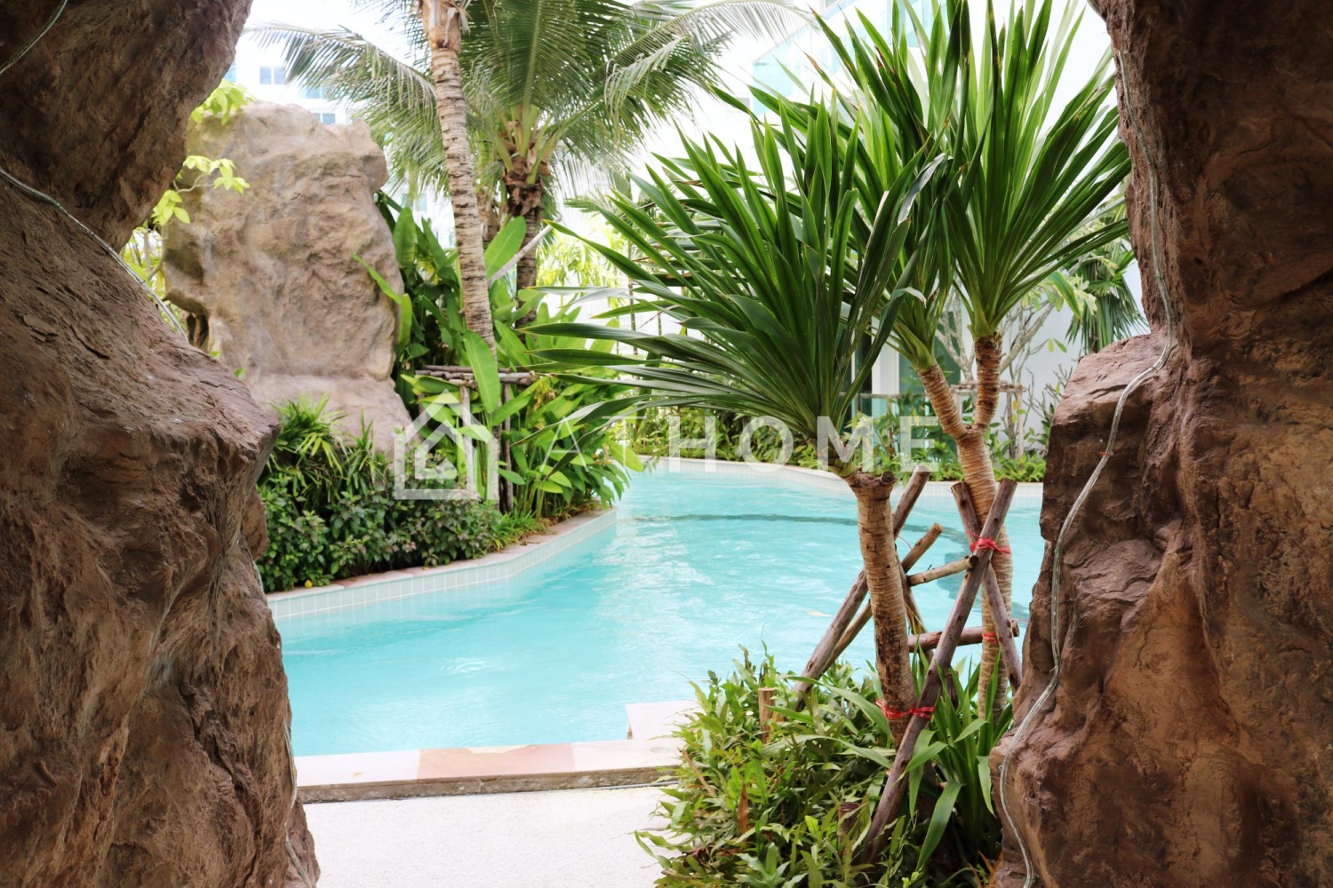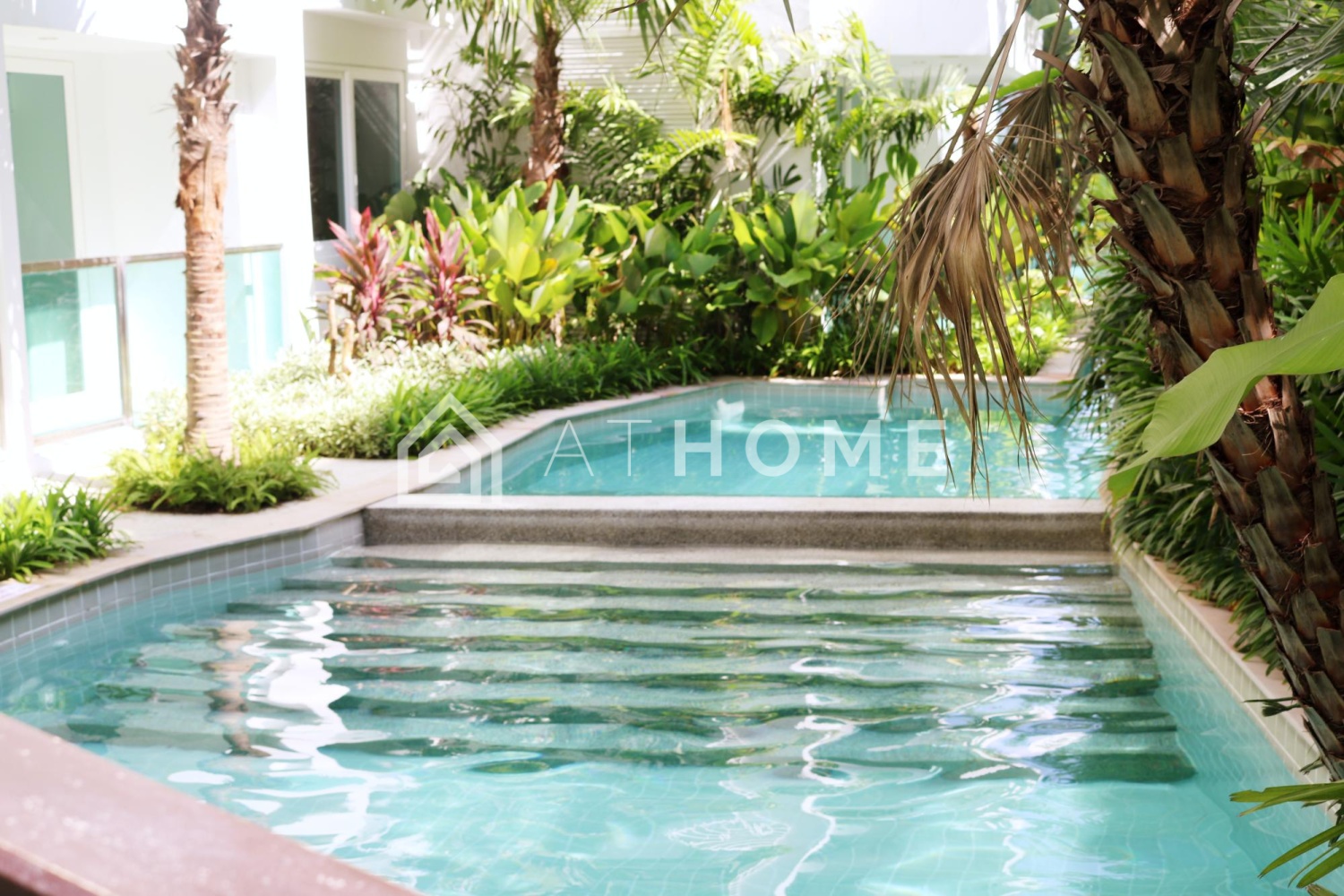 Комплекс предлагает резидентам большую зону бассейнов с островками, мостиками и водопадами, тренажёрный зал, ресепшен, охрану 24/7, видеонаблюдение и парковку. Благоустроенная территория с пальмами и декоративными элементами создаёт атмосферу отпуска круглый год.