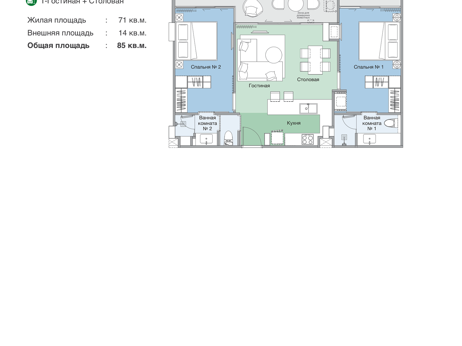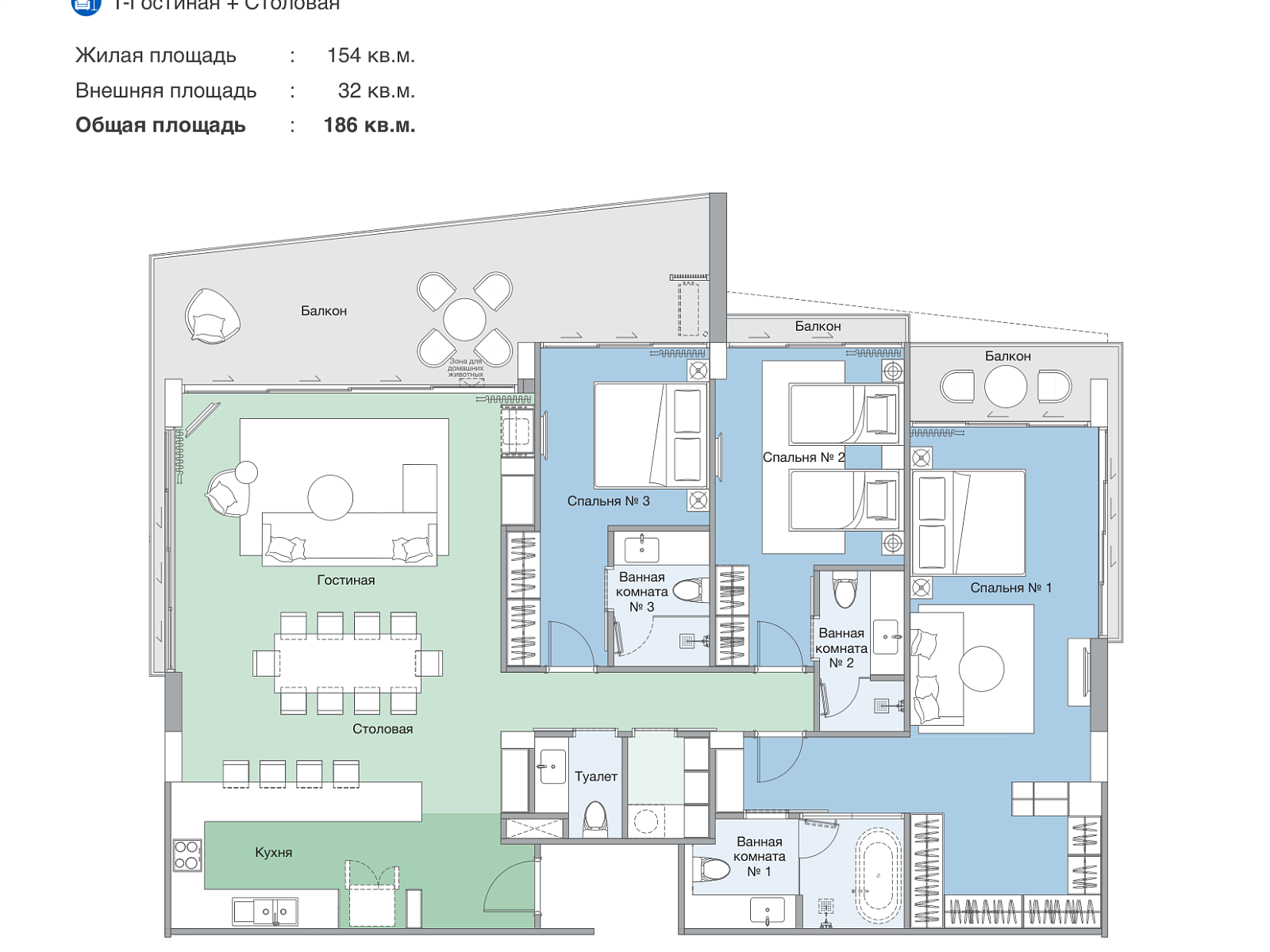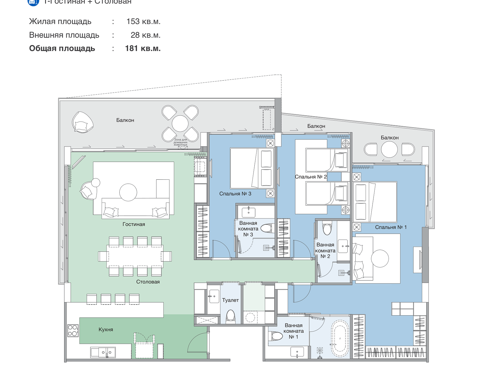 - Закрытые зоны: тренажёрный зал, коворкинг, лаундж, ресепшен, детские игровые зоны.