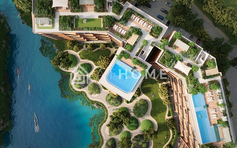 - Открытые зоны: панорамные бассейны на крыше, террасы с видами на озеро, зелёные сады, прогулочные дорожки, зоны отдыха.