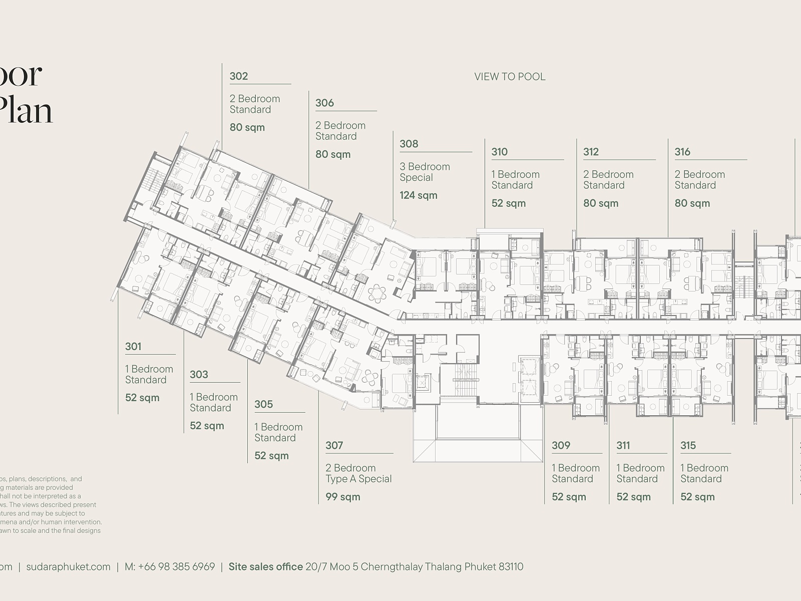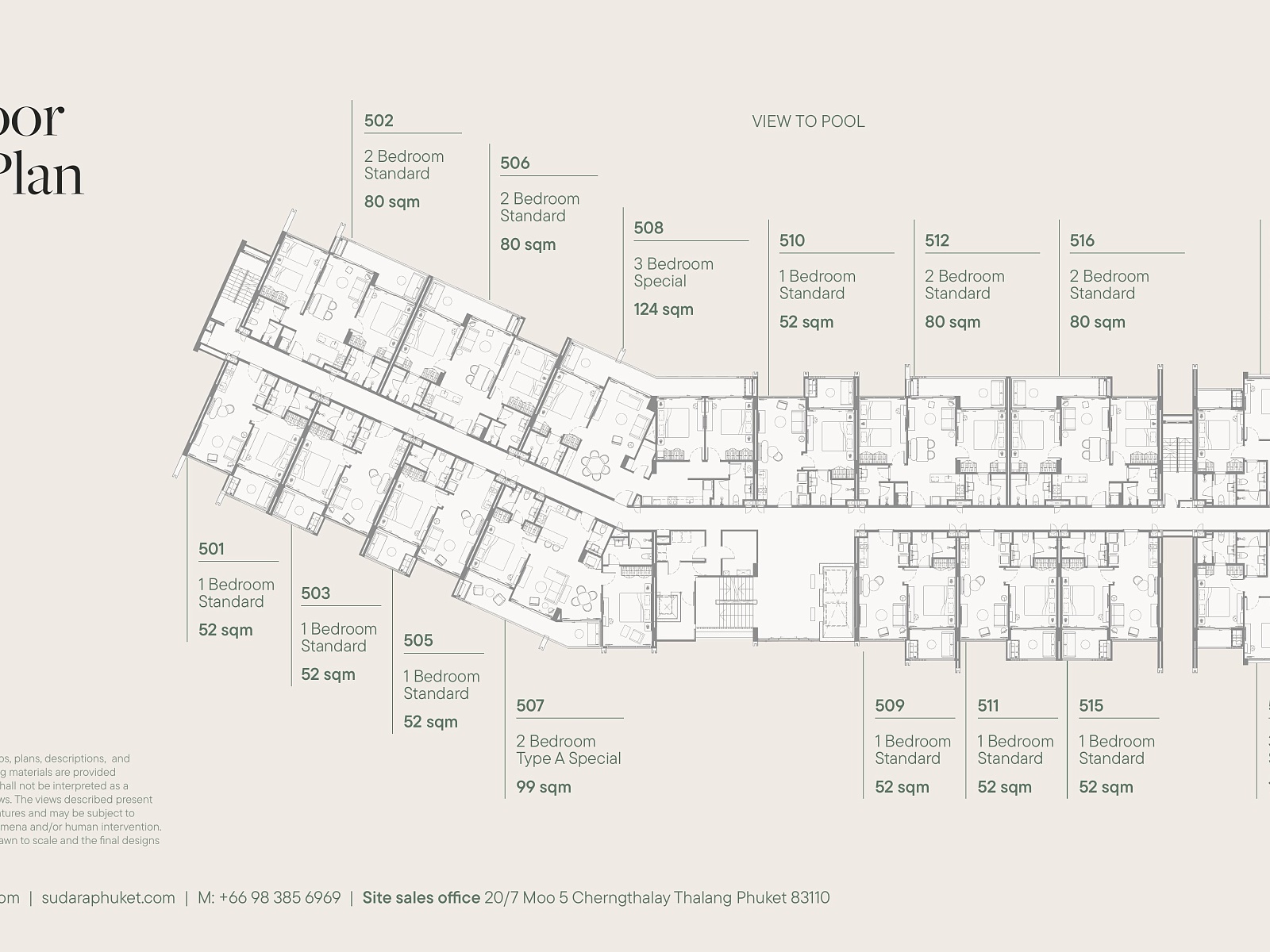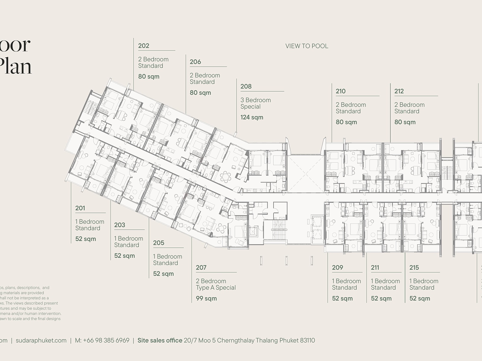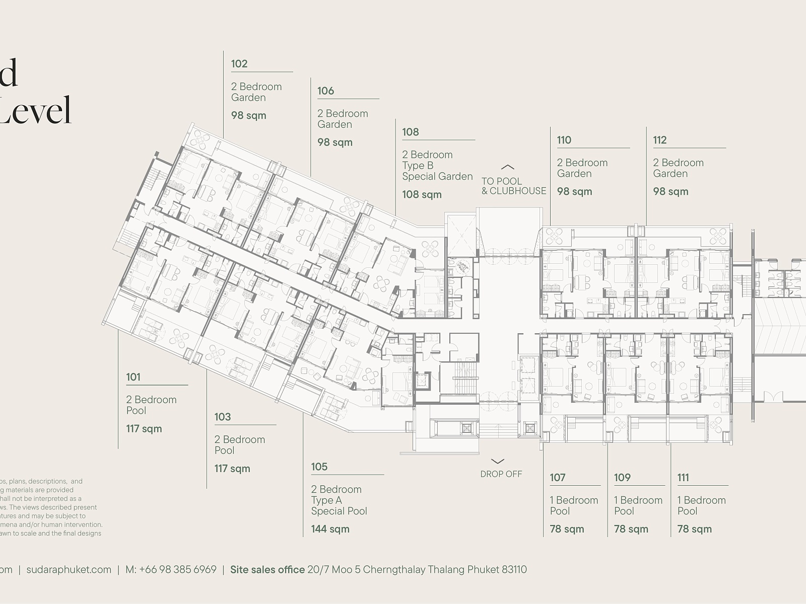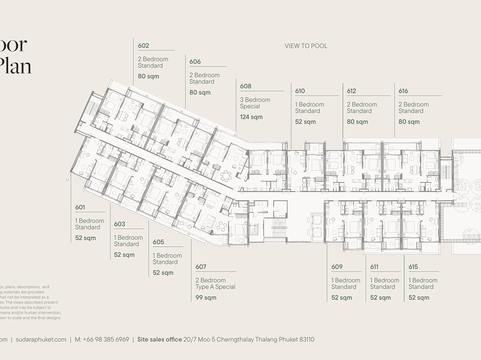 Резиденция представляет собой современный резорт из 8 пятиэтажных зданий, объединённых просторным внутренним двором площадью более 6 000 м². Всего в комплексе предусмотрено 142 юнита — от стильных студий до просторных апартаментов с одной и двумя спальнями. Архитектура вдохновлена природой Пхукета: натуральные материалы, мягкие линии и открытые балконы до 15 м² создают ощущение лёгкости и уединения.
