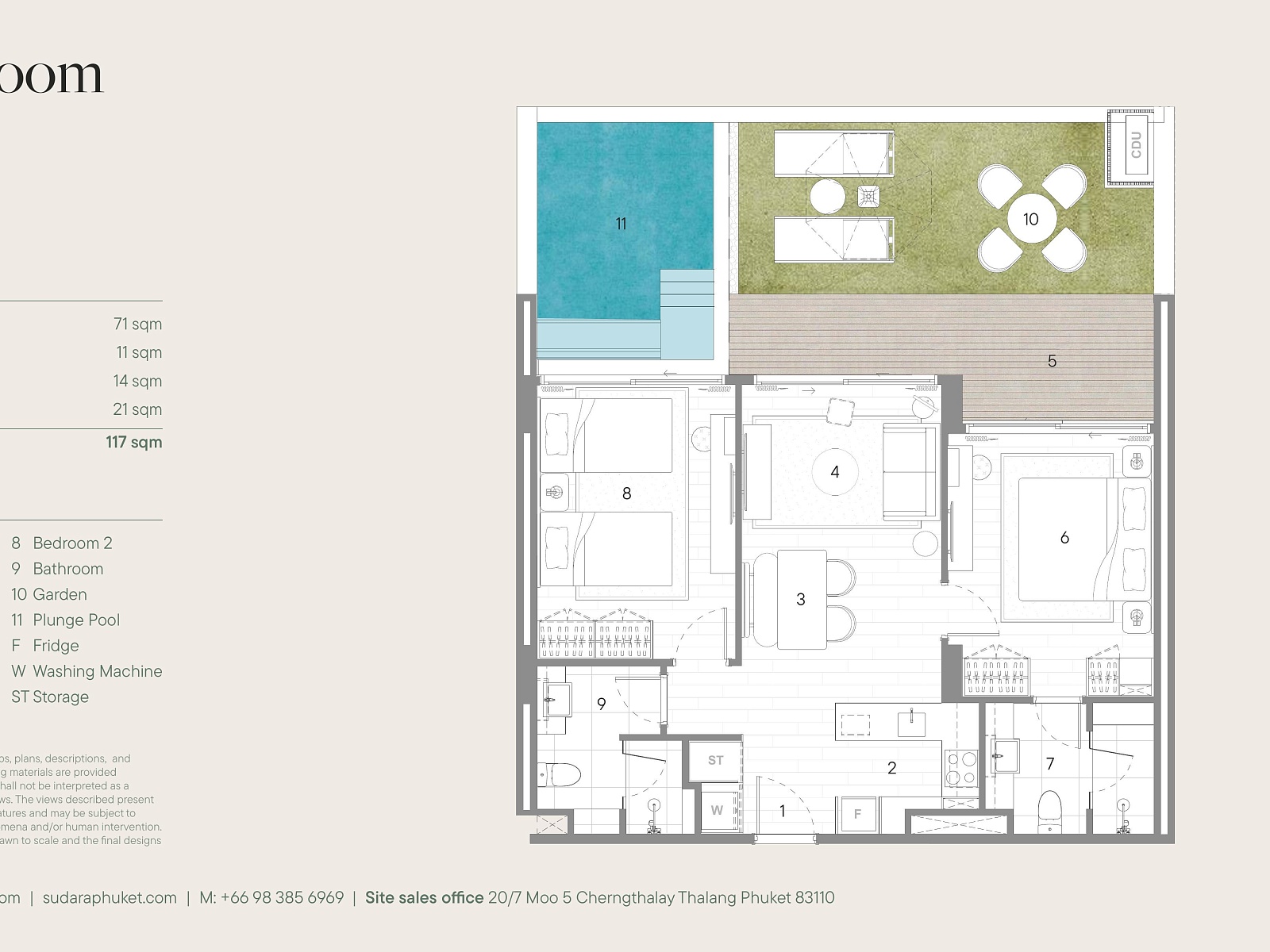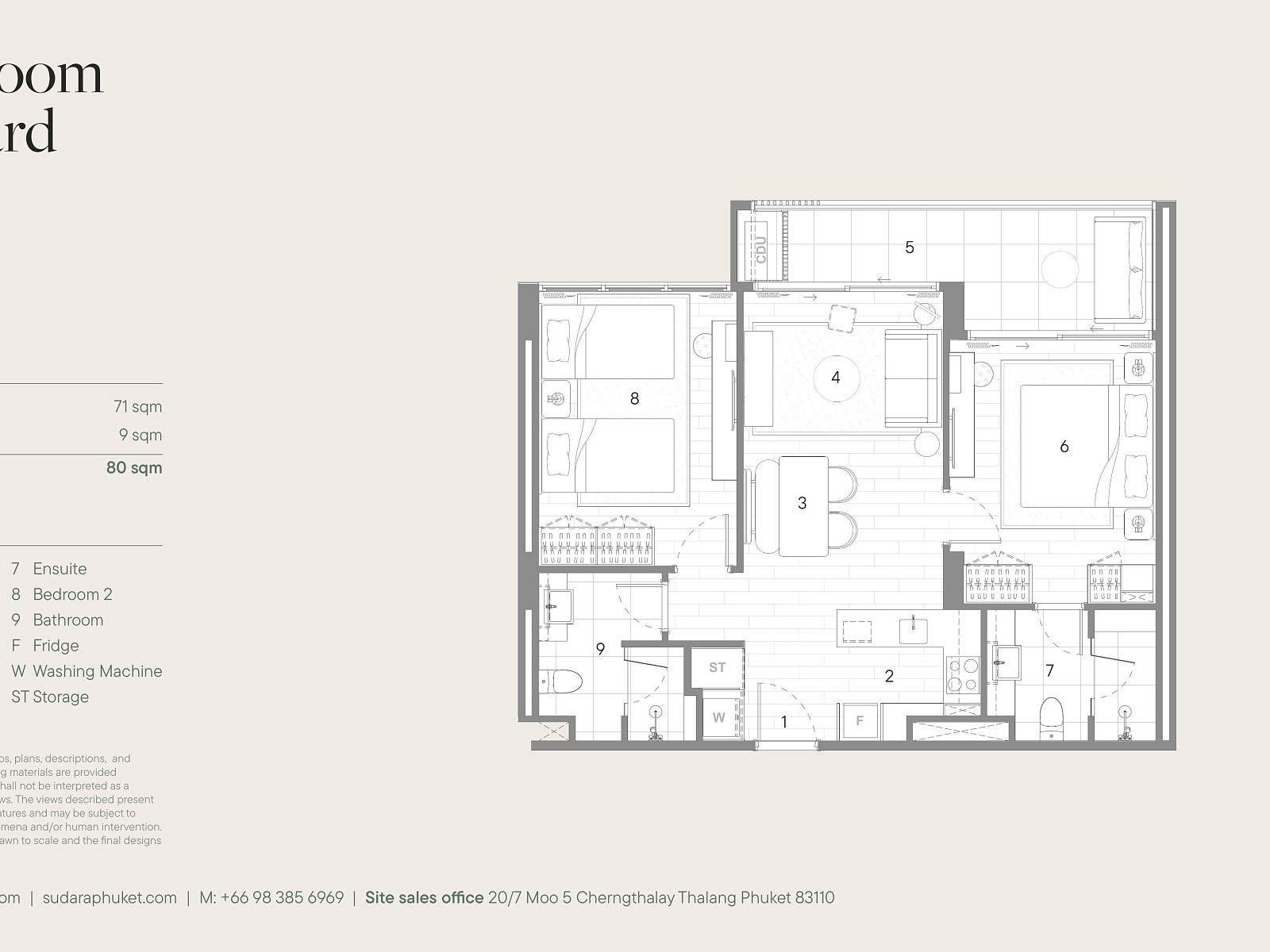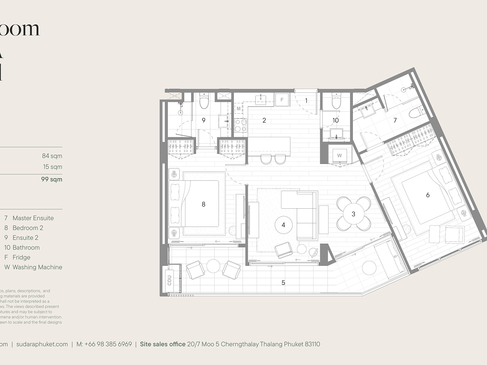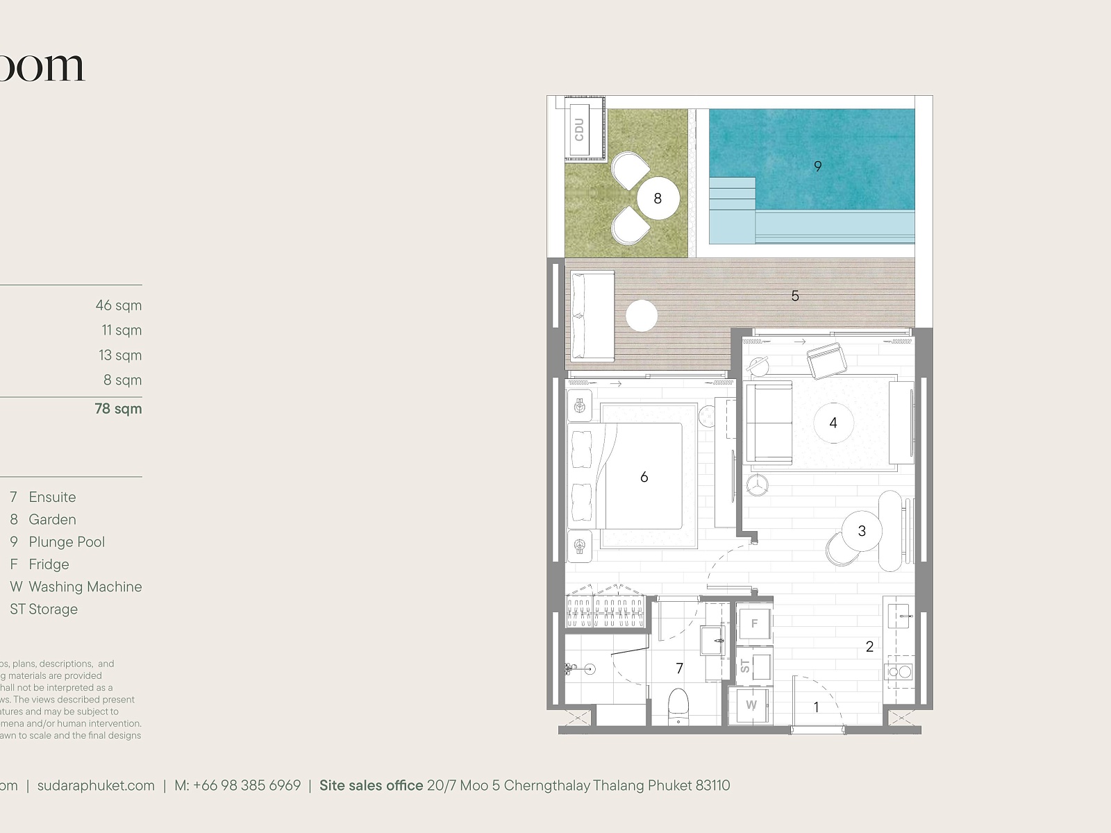 Sudara Residences расположен в районе Банг Тао — элитной локации с лучшими пляжами, гольф-полями, ресторанами и премиальной инфраструктурой острова. Поблизости находятся Boat Avenue, Porto de Phuket, Laguna Phuket и множество кафе, бутиков и спа. До пляжа Банг Тао можно добраться за 5–7 минут, до аэропорта — около 25 минут на автомобиле. Район идеально подходит для жизни, отдыха и сдачи недвижимости в аренду круглый год.