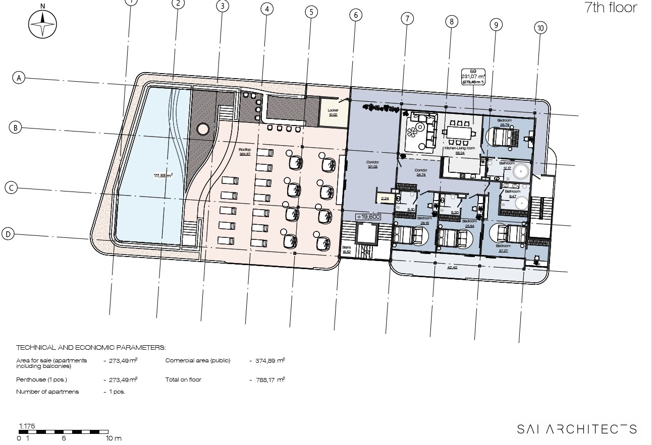 - Внутренние зоны: тренажёрный зал, спа-зона, коворкинг, лаундж, ресепшн.
