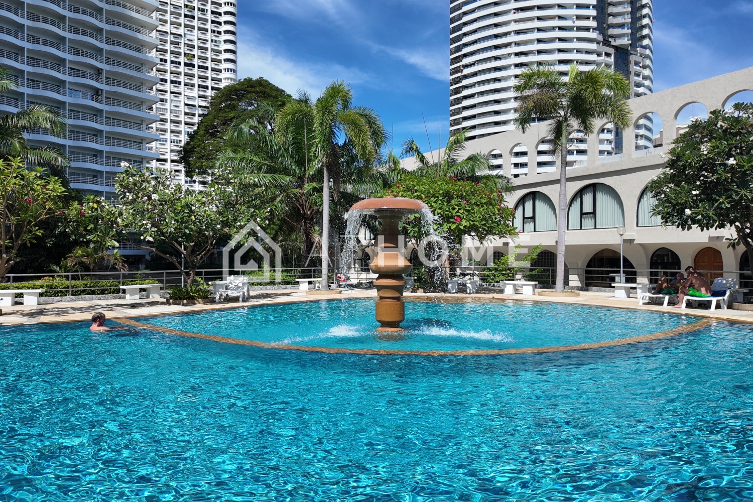Для жильцов предусмотрен большой открытый бассейн, ресторан и кафе, мини-маркеты, прачечные, аптеки и салоны красоты на территории комплекса. Есть охраняемая парковка, круглосуточная охрана, видеонаблюдение и прямой выход к пляжу. Территория ухоженная и обустроенная для комфортной жизни.