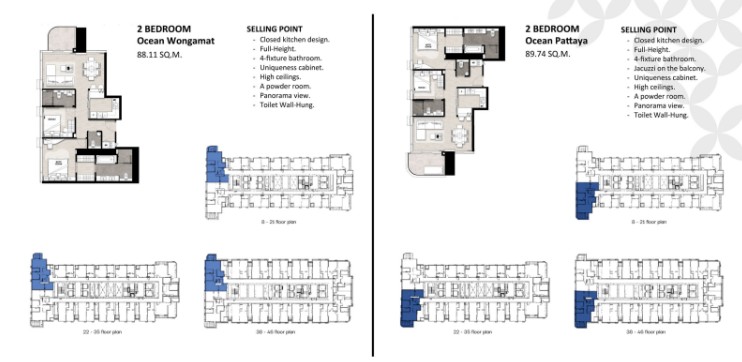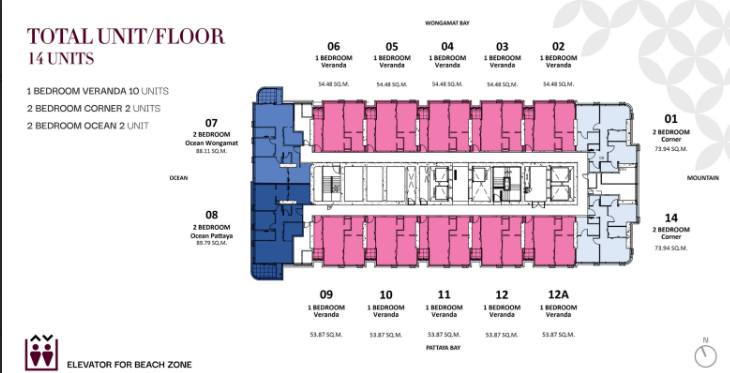 Комплекс расположен в престижном районе Wongamat, в окружении элитных резиденций и отелей. До пляжа — 300 метров, до Terminal 21 — 5 минут, до центра Паттайи — 10 минут. Район популярен среди арендаторов и туристов, что делает ONCE Wongamat выгодным выбором для инвестиций.