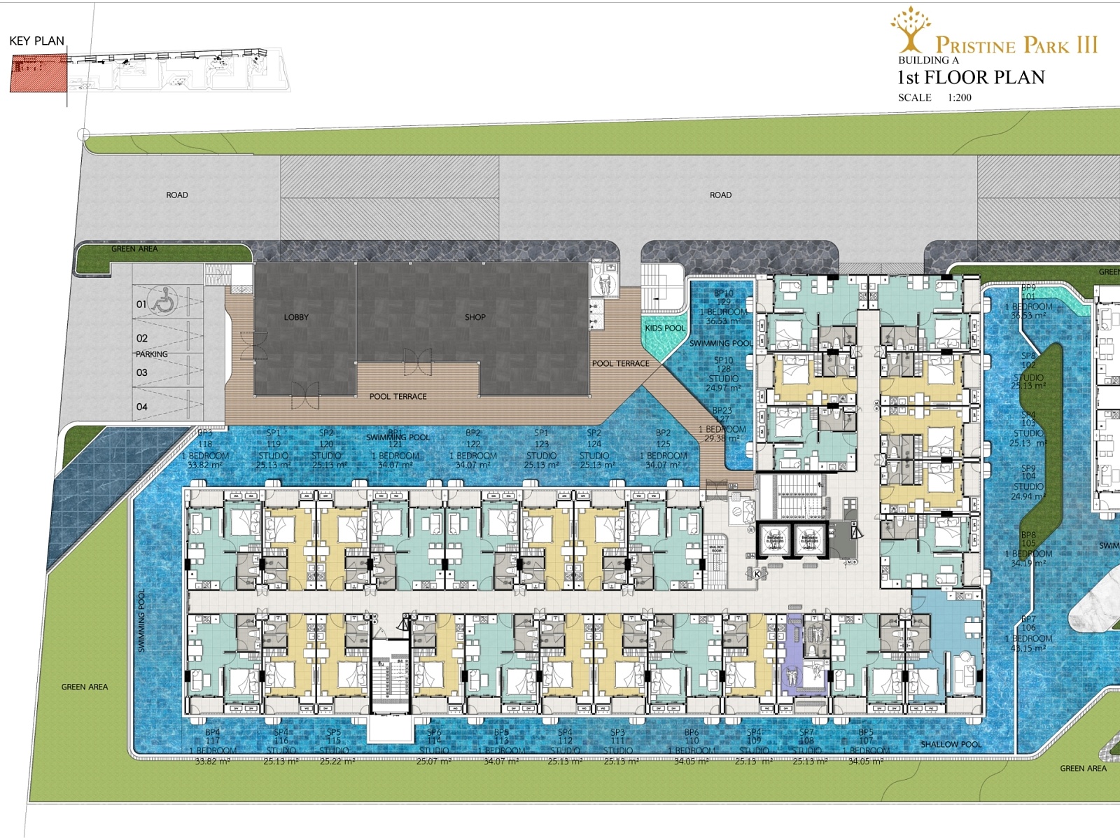 Pristine Park 3 — это закрытый жилой комплекс из двух 8-этажных зданий, объединённых общей курортной инфраструктурой. Проект включает более 400 квартир площадью от 22 м² с полной отделкой и меблировкой. В центре — бассейн-лагуна, окружённый пальмами, зелёными зонами и зонами отдыха.