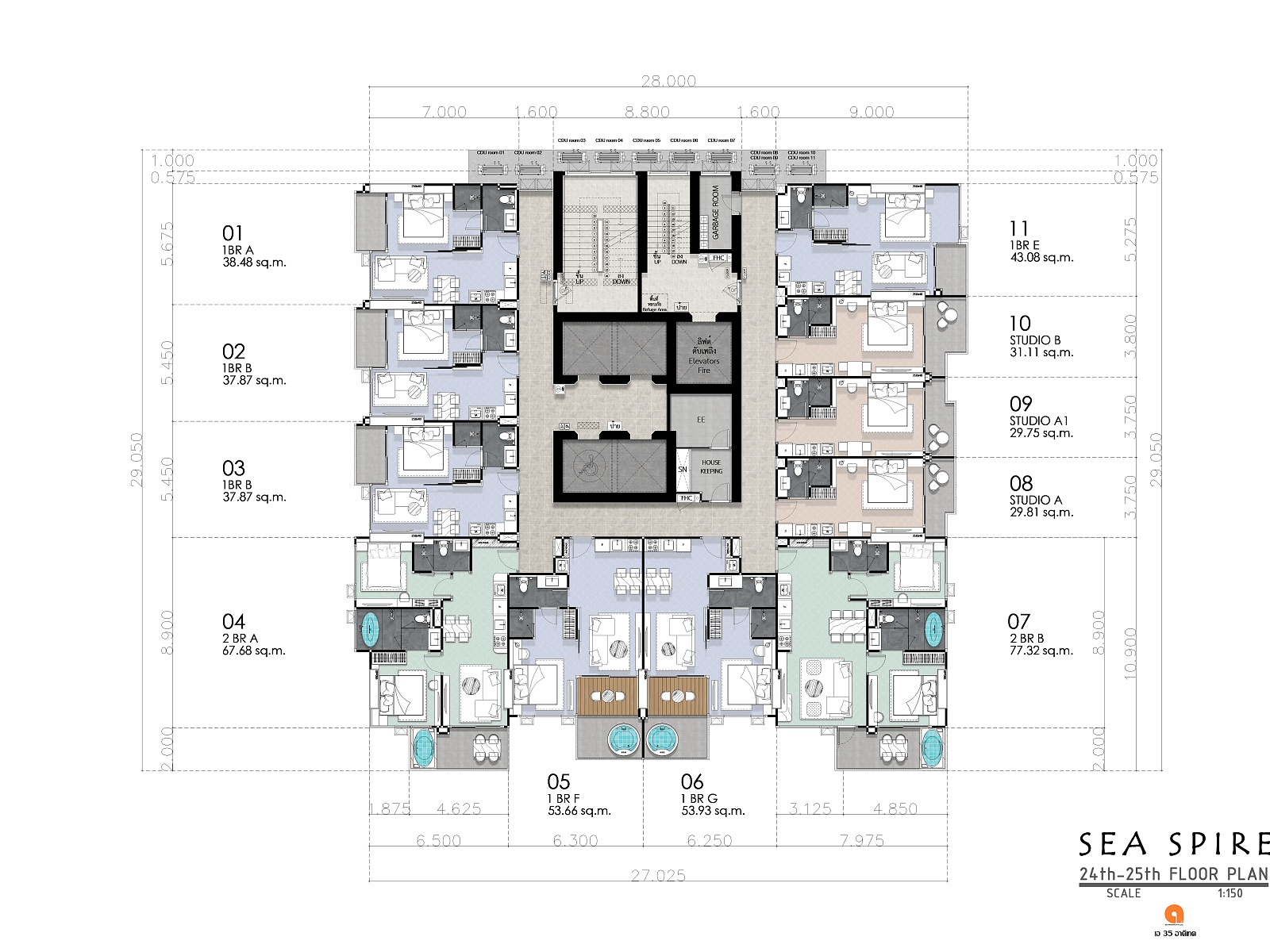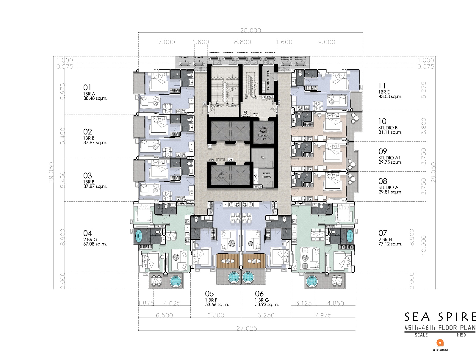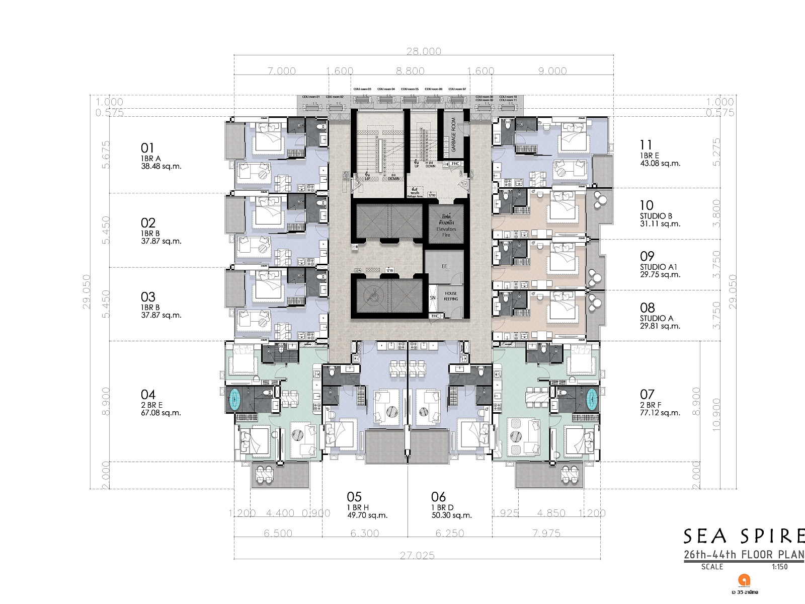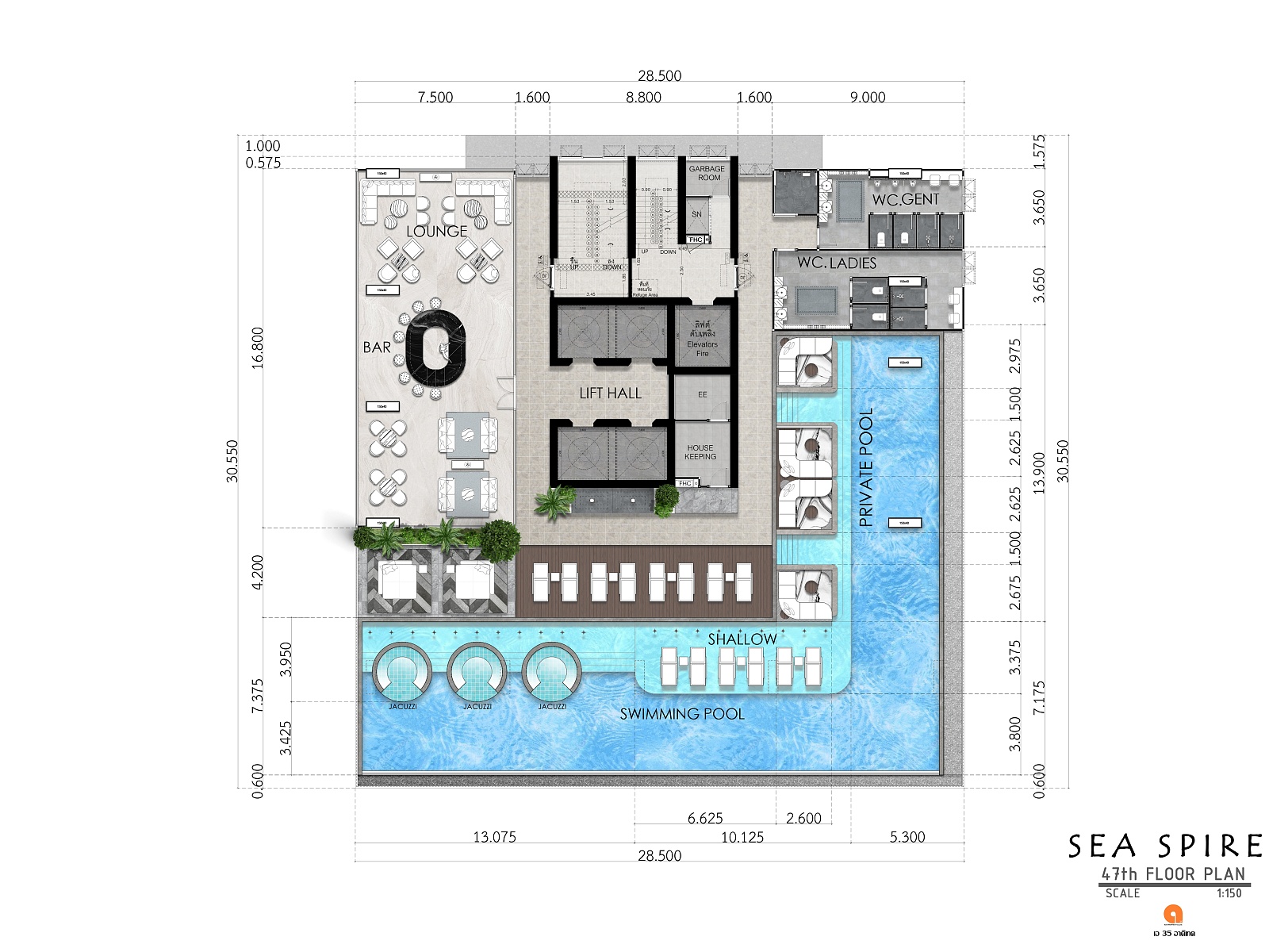 Sea Spire Jomtien — это современный высотный проект (49 этажей) с продуманными планировками: студии, одно- и двухкомнатные квартиры. Юниты передаются с качественной отделкой и комплектом встроенной техники; акцент на видах, светлых интерьерах и максимальном использовании пространства. Высокий этаж и ориентация корпусов обеспечивают приватность и тишину даже в разгар сезона.