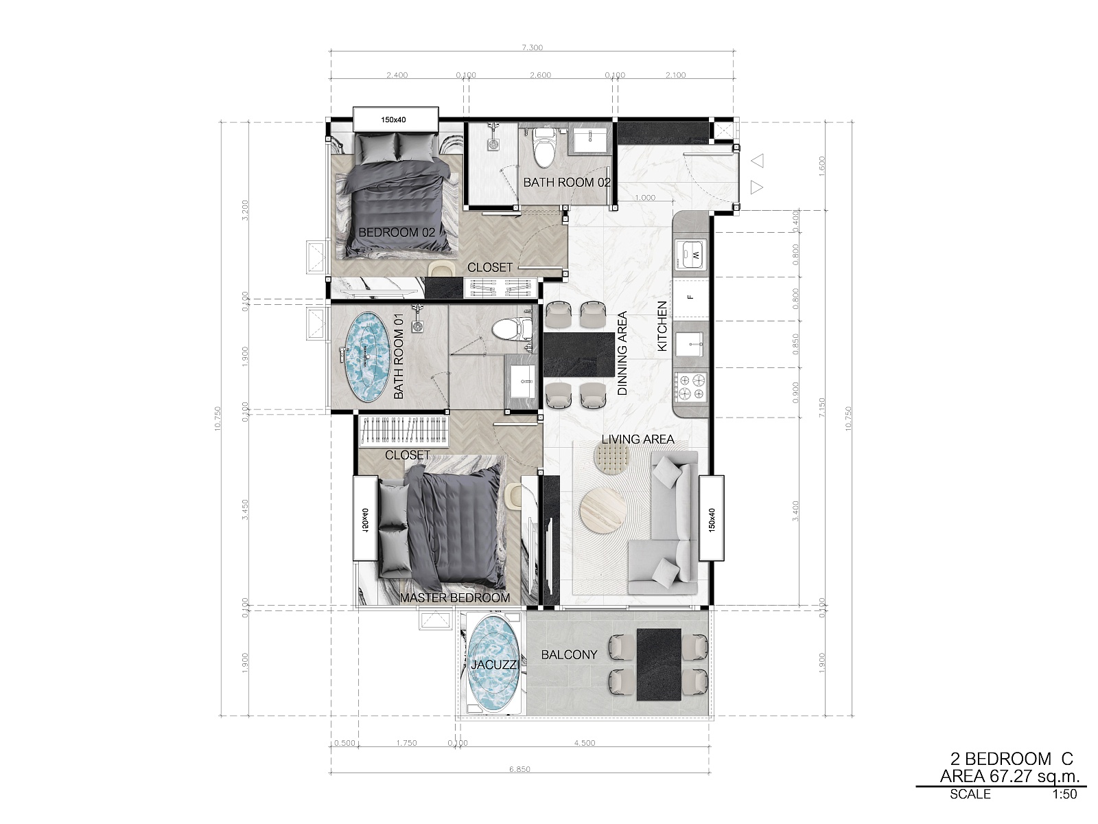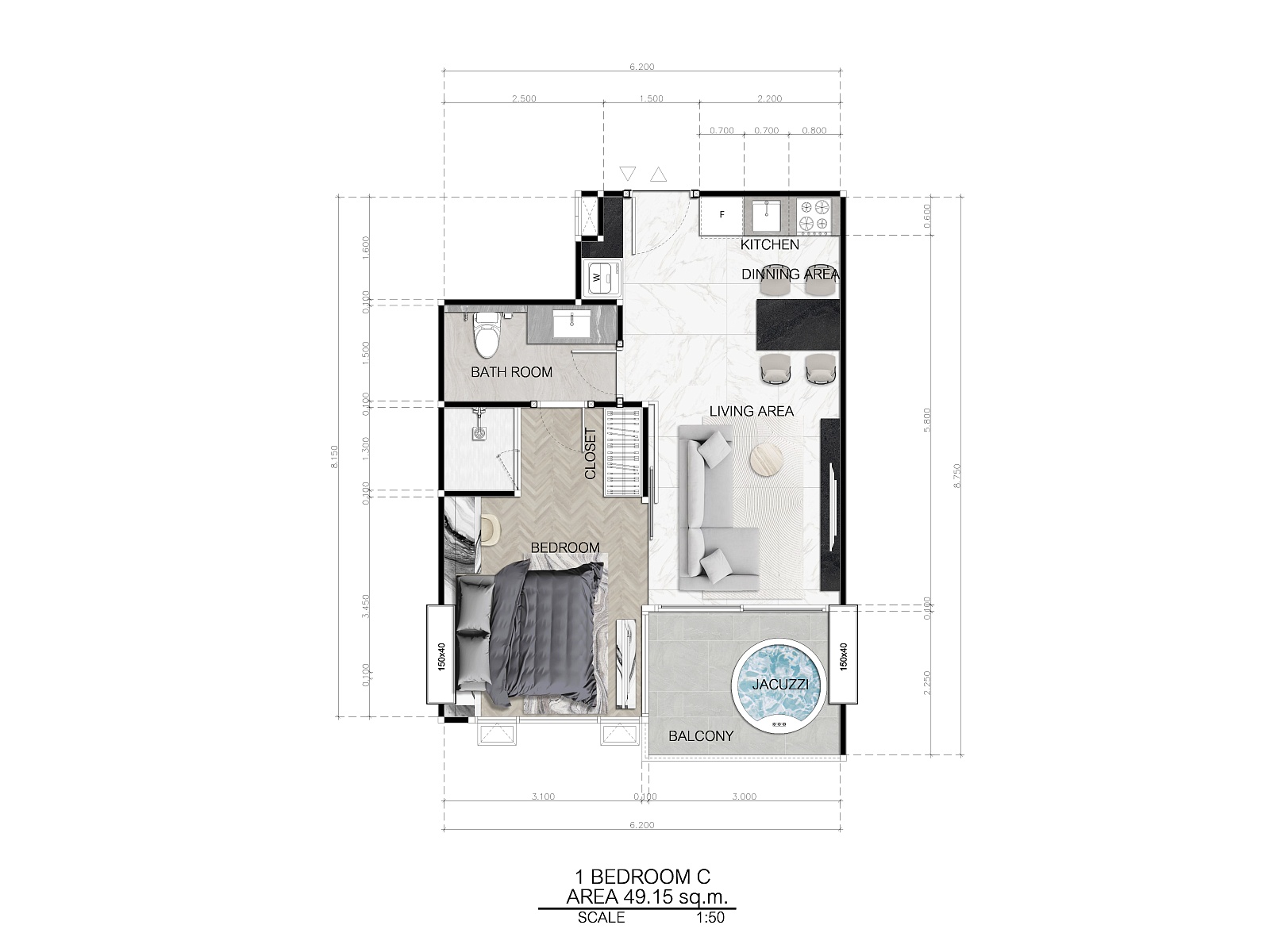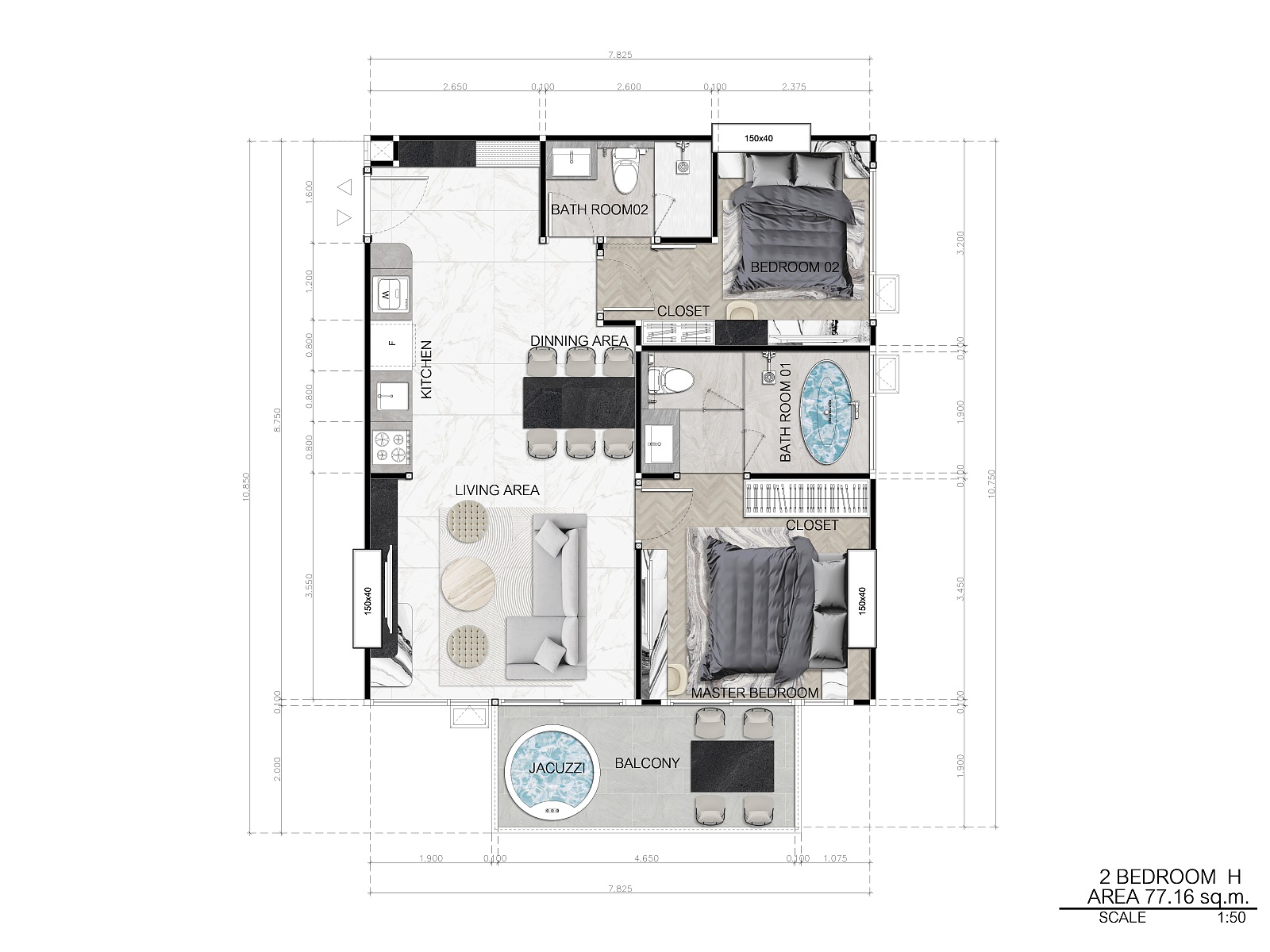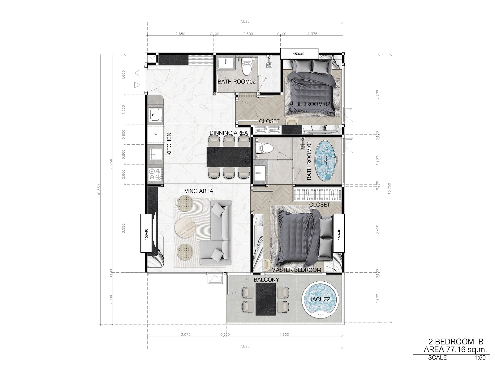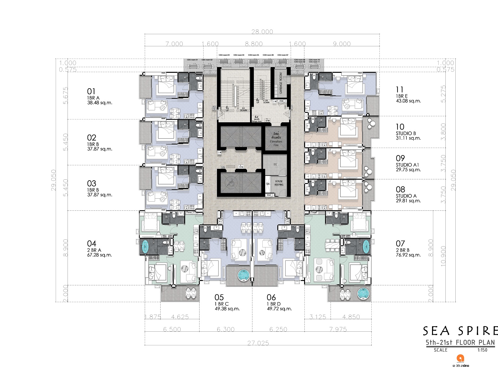 Sea Spire Jomtien — это современный высотный проект (49 этажей) с продуманными планировками: студии, одно- и двухкомнатные квартиры. Юниты передаются с качественной отделкой и комплектом встроенной техники; акцент на видах, светлых интерьерах и максимальном использовании пространства. Высокий этаж и ориентация корпусов обеспечивают приватность и тишину даже в разгар сезона.
