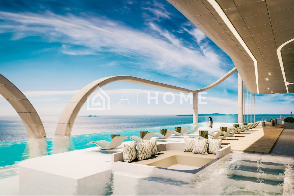 Для резидентов предусмотрены несколько бассейнов (в том числе панорамный на крыше), зоны лаунж и sky bar, фитнес с видом на море, сауна и онсэн (раздельные), детский клуб и игровая, коворкинг и переговорные, садовые террасы, консьерж-сервис, круглосуточная охрана и система видеонаблюдения, многоуровневая парковка. Планировкой этажей предусмотрены семейные и тихие зоны отдыха.