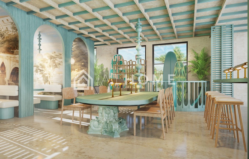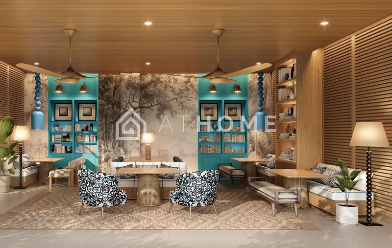 - Внутренние зоны: Surf Café, частный лаунж, библиотека, прачечная, детская комната, party room, зона груминга, конференц-зал, коворкинг, wellness-зона, юридический центр.