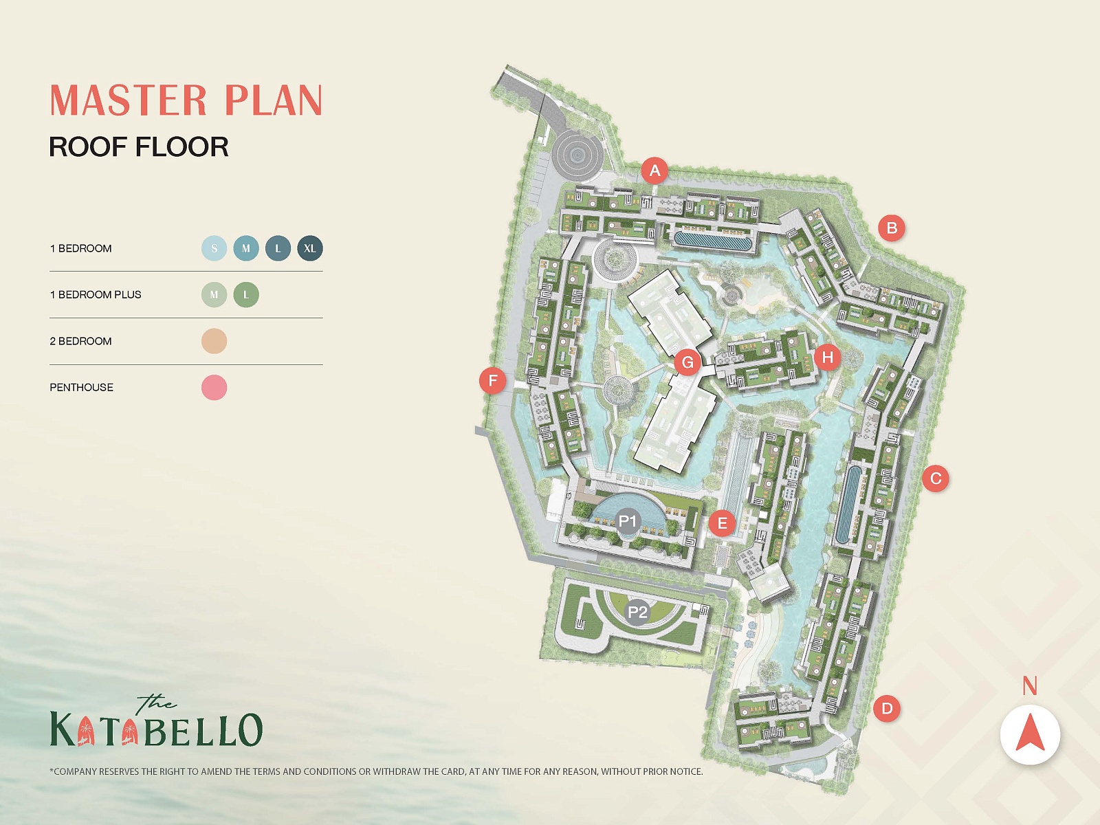 Проект представляет собой курортный жилой комплекс в средиземноморском стиле, состоящий из 8 семиэтажных зданий (A–H), 2 зданий-паркингов и отдельного корпуса для ухода за домашними животными. Всего в проекте 760 квартир с полной отделкой и меблировкой — от компактных студий до пентхаусов с видом на море.