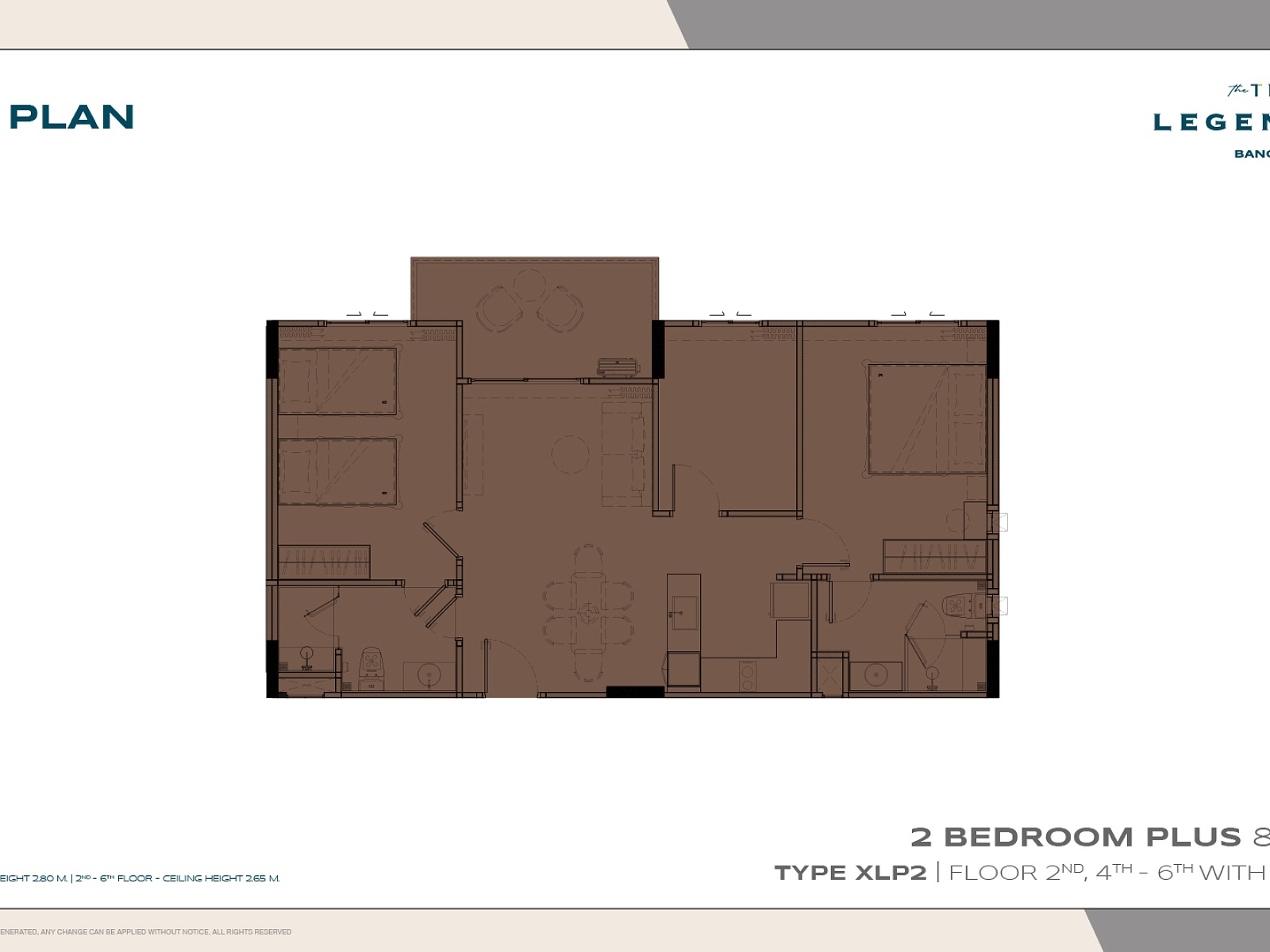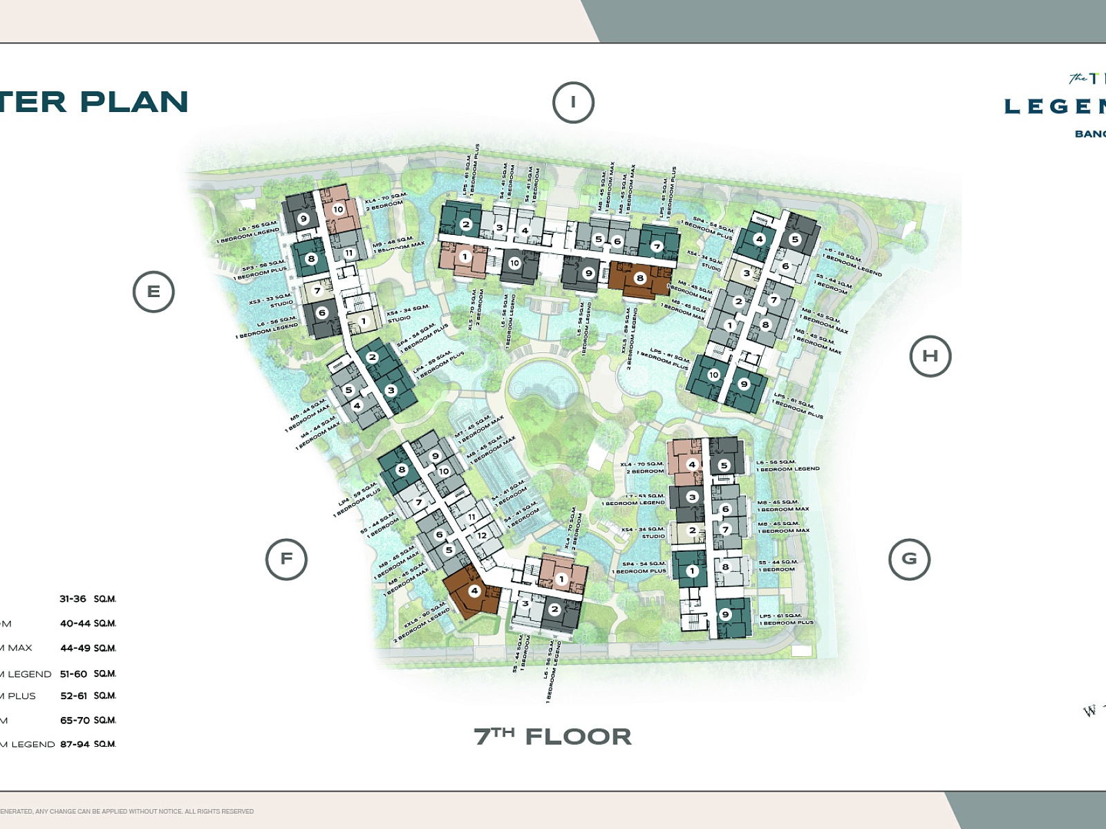 The Title Legendary — это низкоэтажный курортный резиденшн в тропическом современном стиле. Комплекс состоит из 9 корпусов по 7 этажей и предлагает разнообразие планировок: студио, 1-комнатные и 2-комнатные апартаменты (диапазон площадей примерно от ~31 до ~94 м²). Архитектура сочетает лаконичные современные формы с тропическими мотивами; в отделке используются качественные материалы и встроенная мебель в ряде блоков.